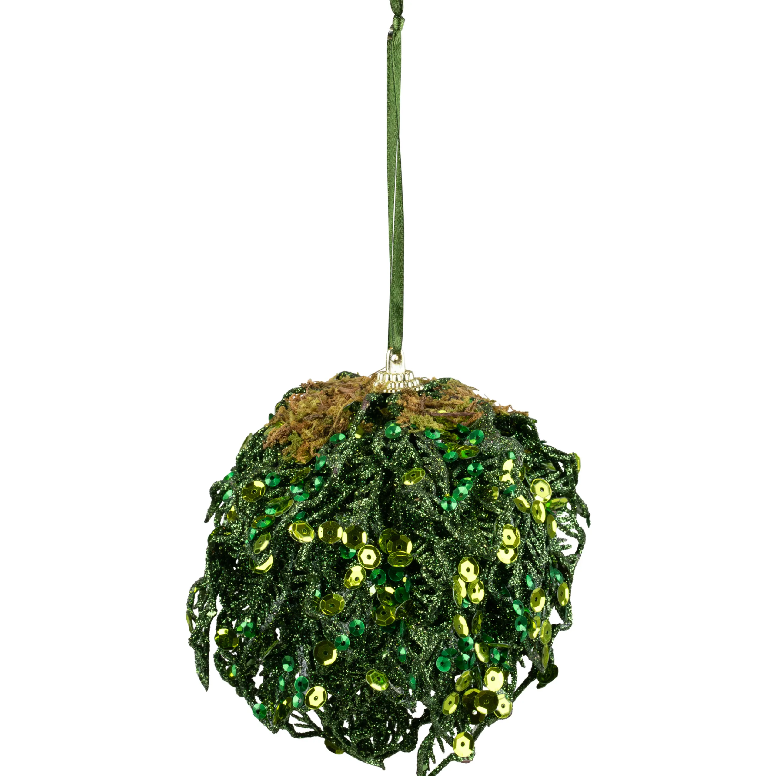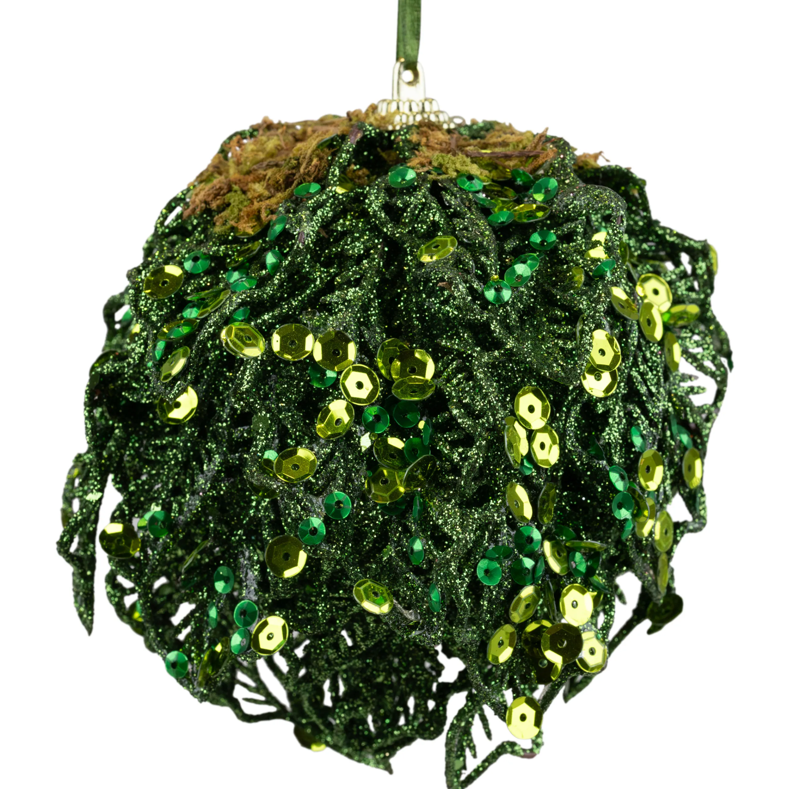 Northlight Balls>4″ Green Glitter And Sequin Leaf Shatterproof Christmas Ball Ornament