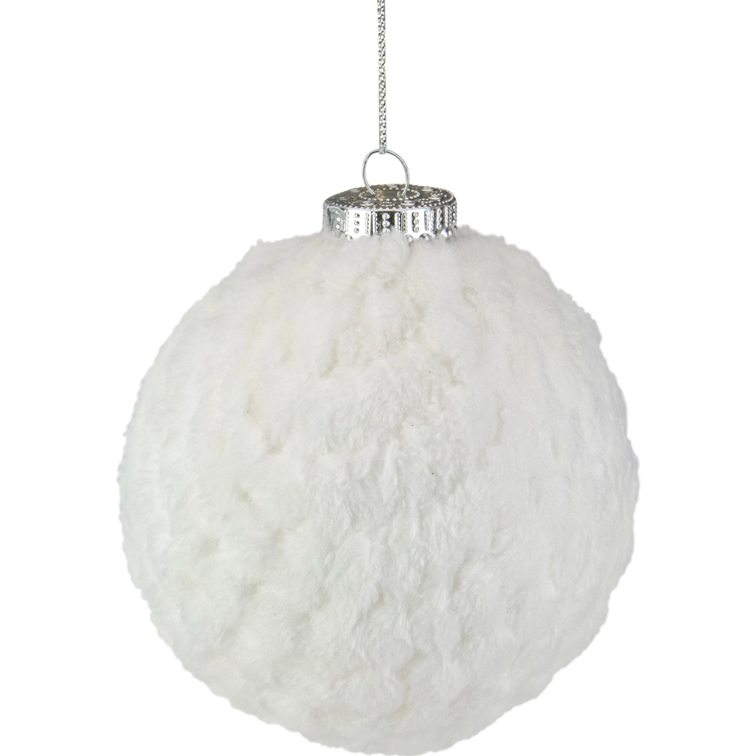 Northlight Balls>4-Inch White Chenille Plush Christmas Ball Ornament