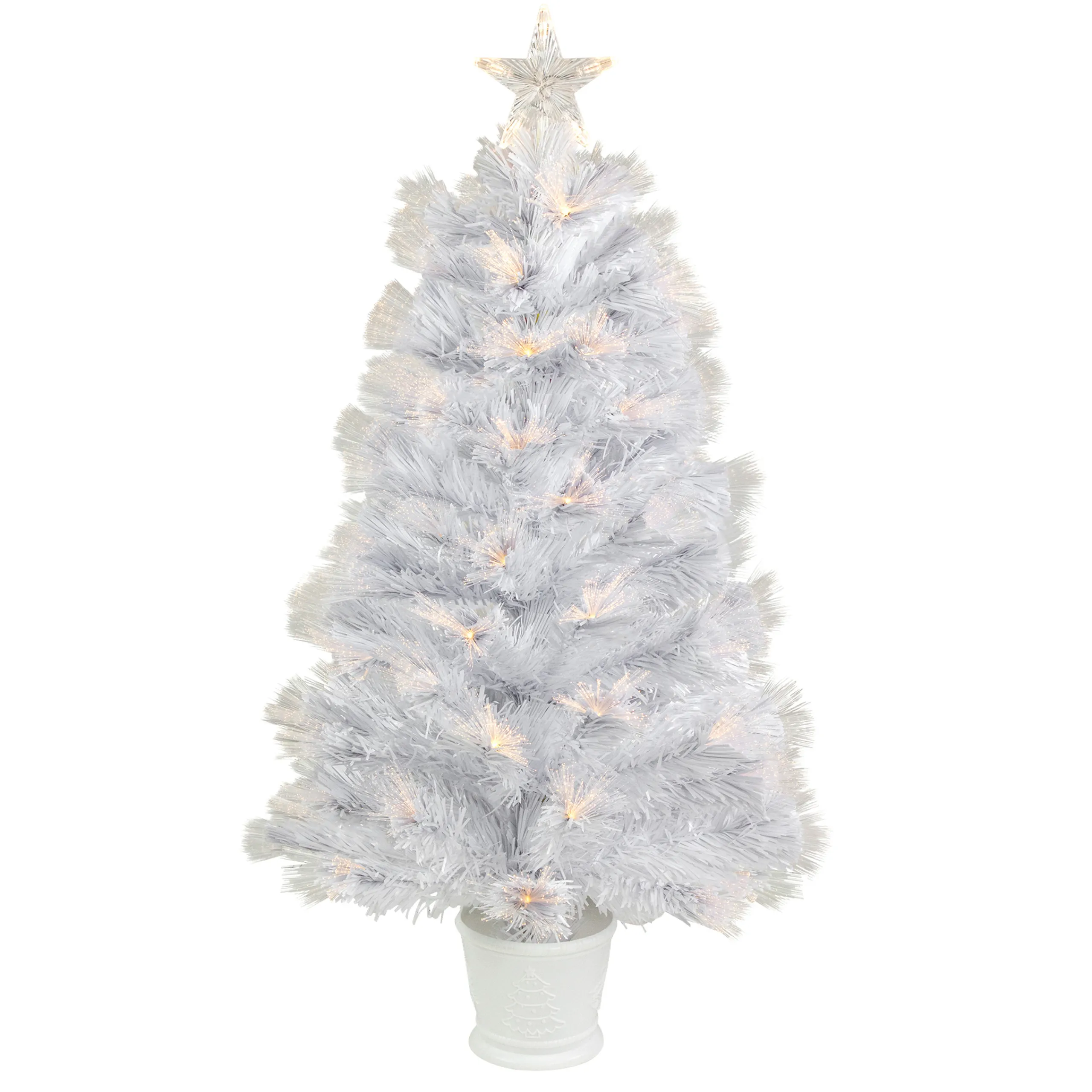 Northlight Fiber Optic Trees>3′ Pre-Lit White Fiber Optic Artificial Christmas Tree, Warm White Lights