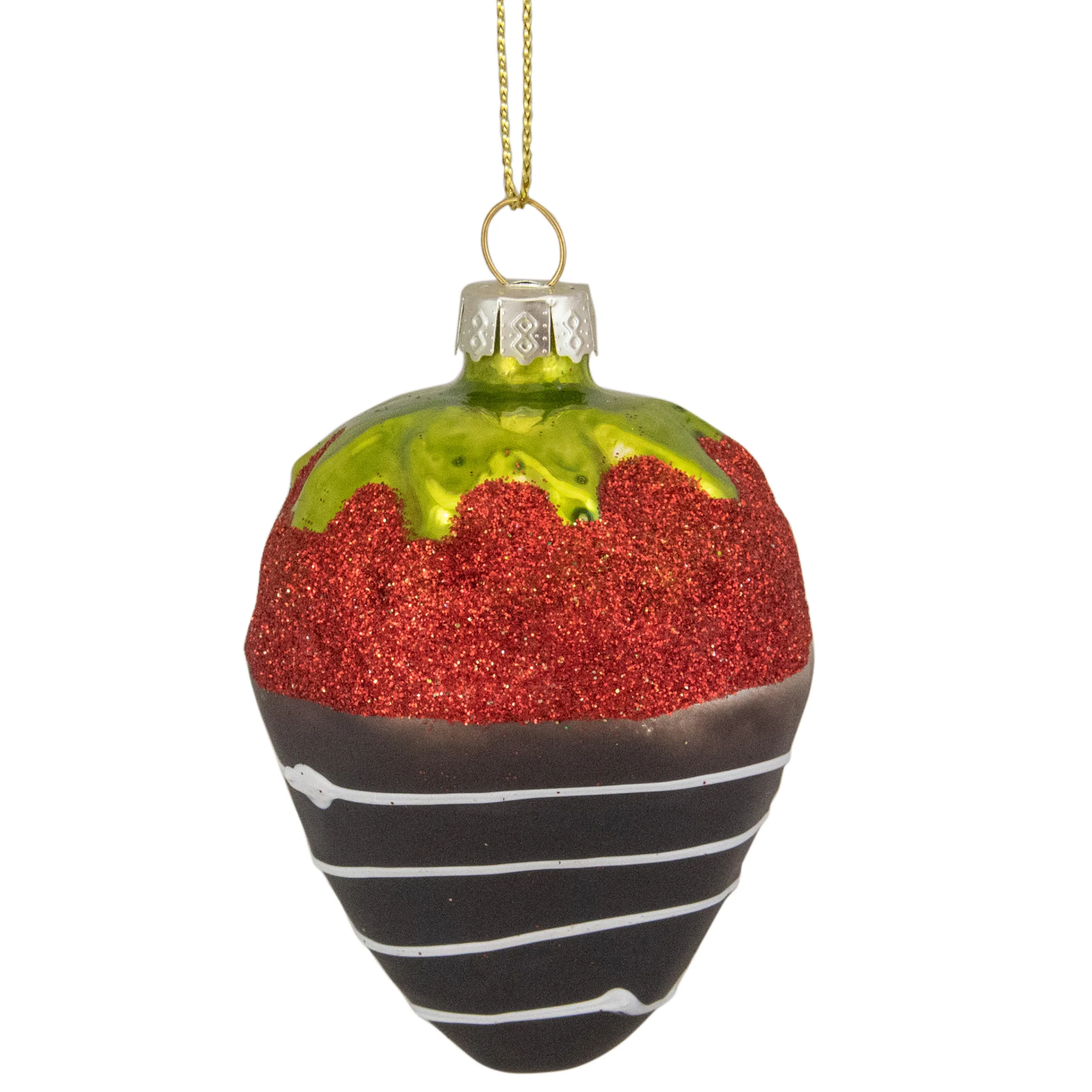 Northlight Food & Beverage>2.75″ Chocolate Covered Glittered Strawberry Christmas Glass Ornament