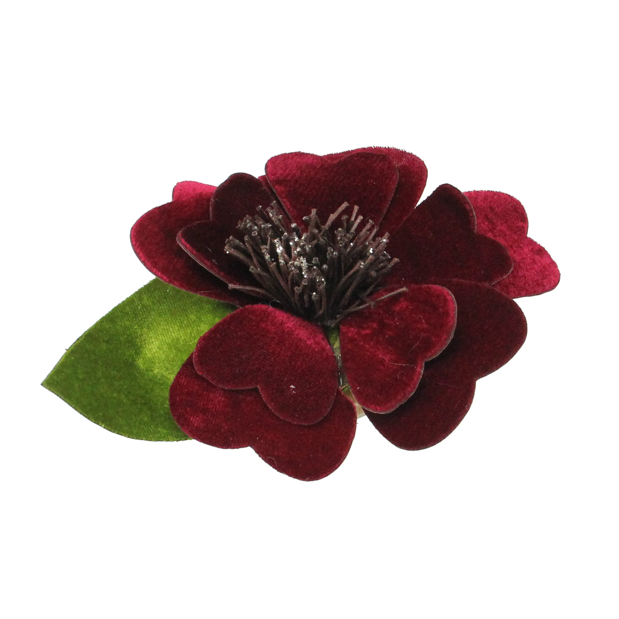 Northlight Garden & Floral>6.25″ Red Heart Flower With Leaf Clip-On Christmas Ornament