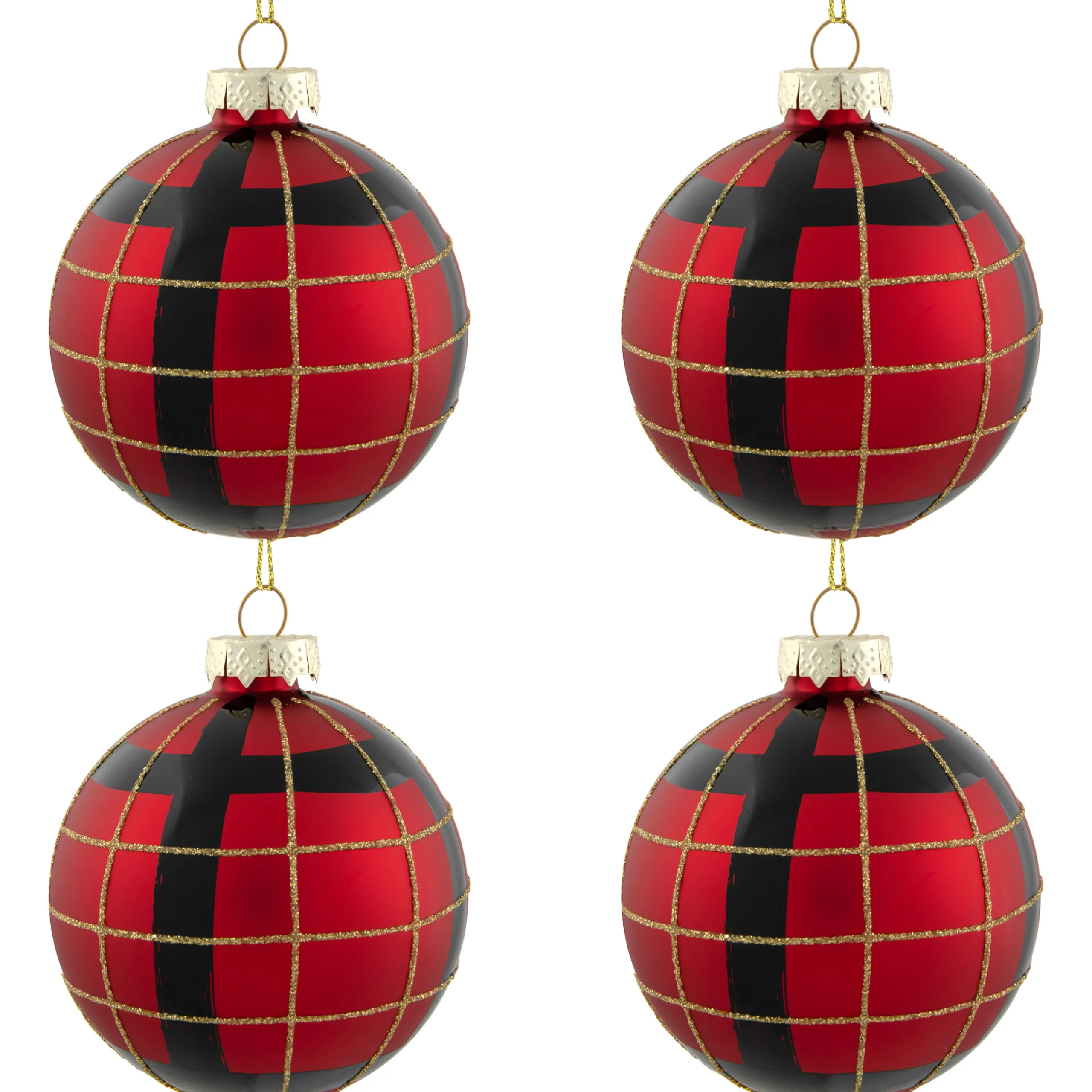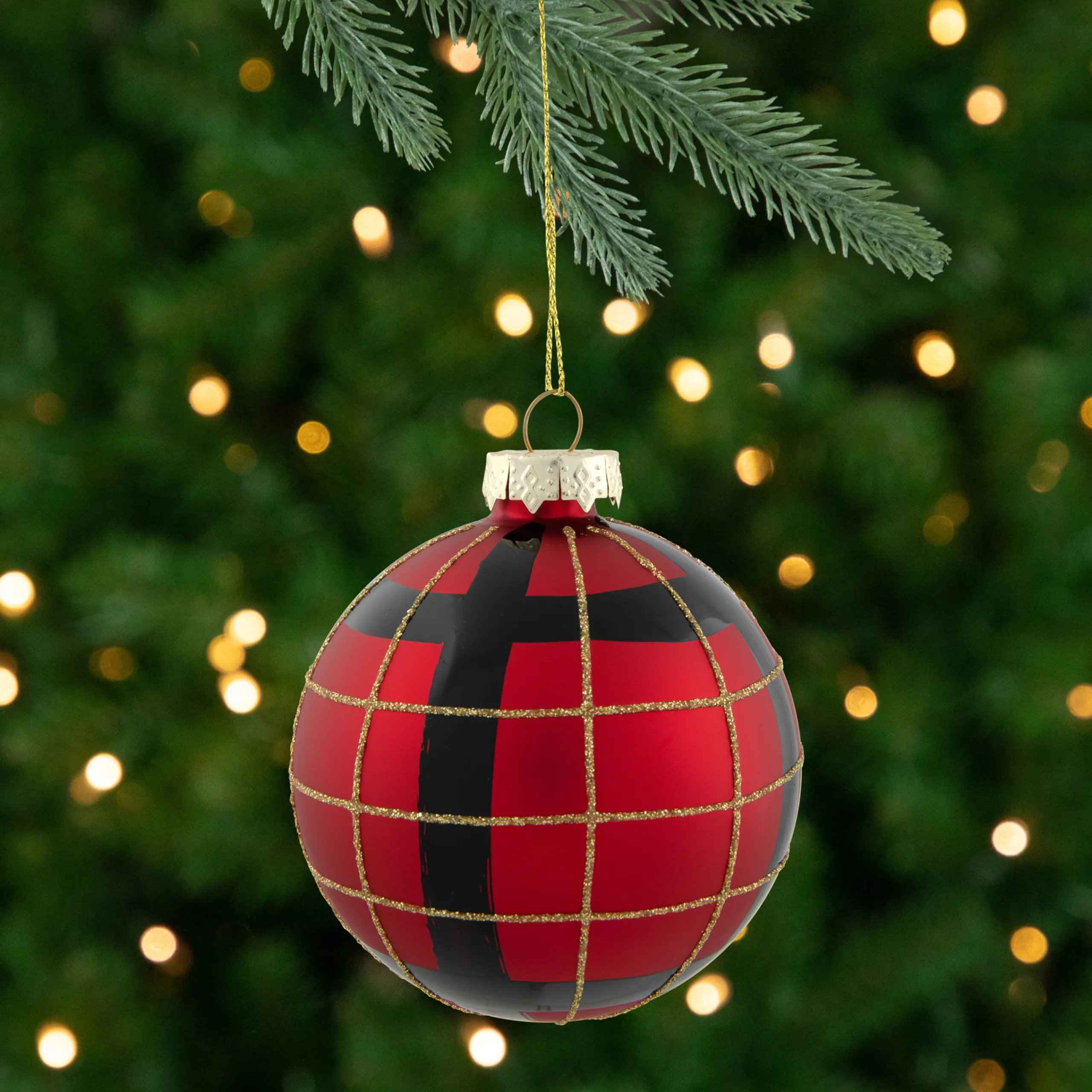 Glass Ball Ornaments Are One Of A Kind! A Classic Shape With Fresh Designer Colors, These Ball Ornaments Will Allow You To Build Your Collection Quickly And Decorate With More Possibilities. These Red, Black And Gold Plaid Glass Ball Ornaments Are Great For Christmas And All The Way Through The New Year.