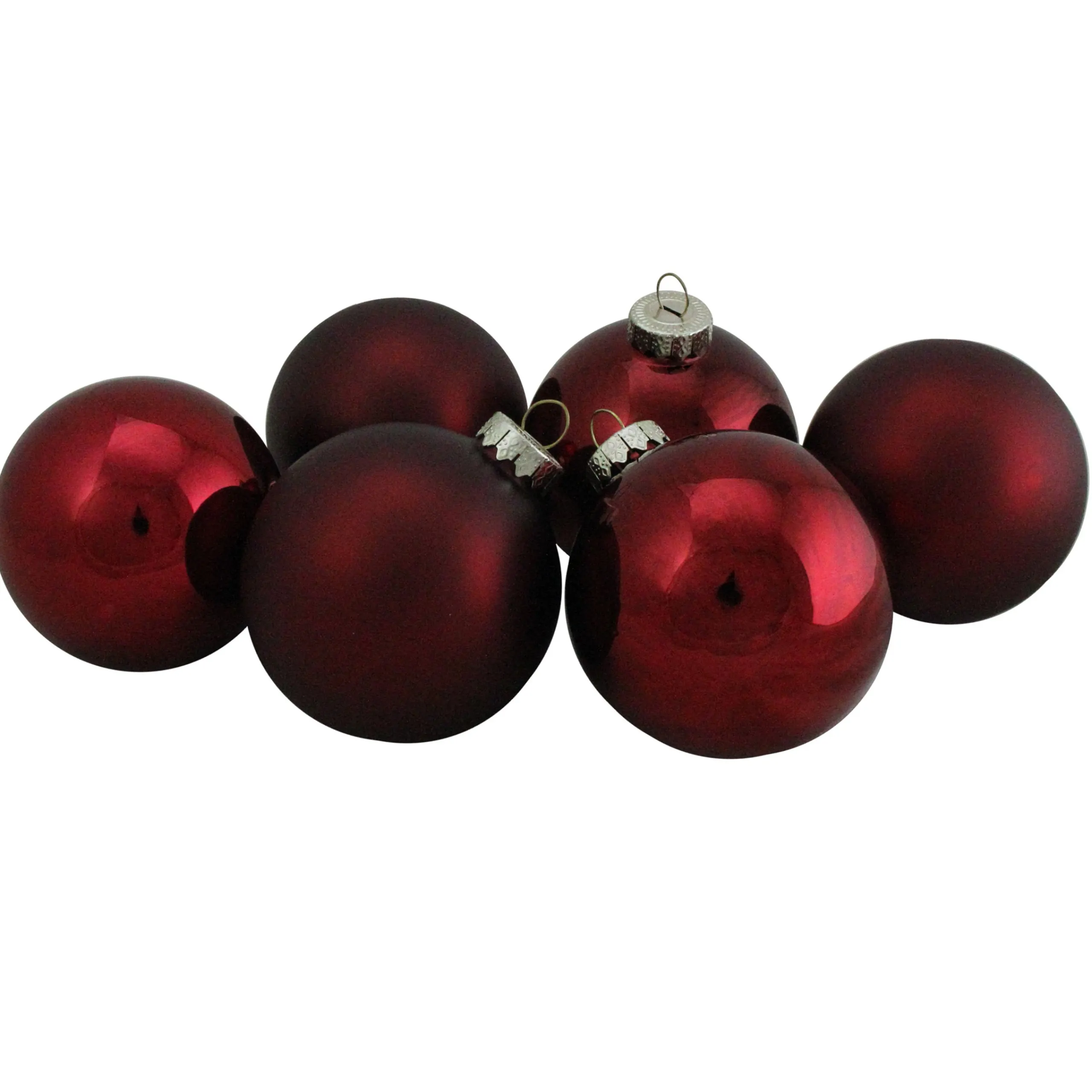 Northlight Glass Balls>6Ct Burgundy Red 2-Finish Glass Ball Christmas Ornaments 3.25″ (80Mm)