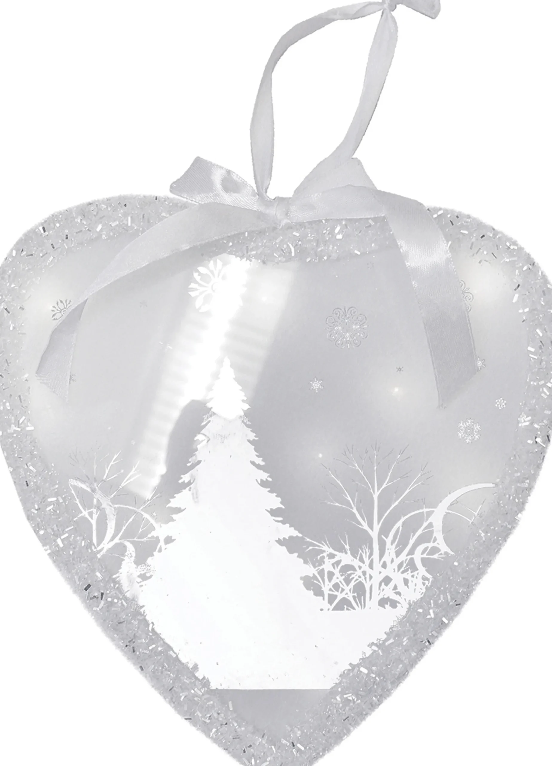 Northlight Hearts>8″ White Pre-Lit Led Sparkle Wintery Woods Scene Christmas Heart Ornament