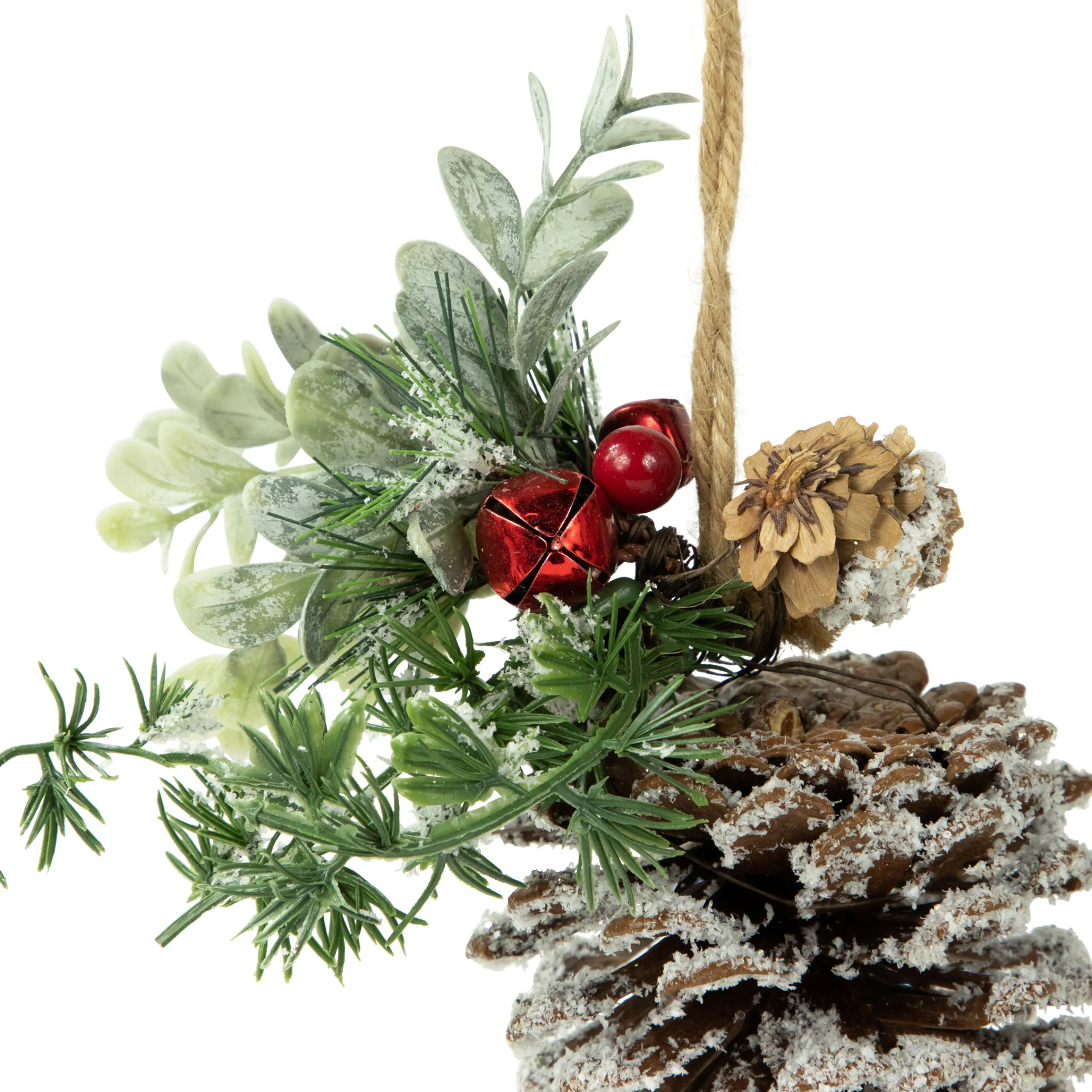 Add A Touch Of Natural Charm To Your Holiday Decor With This Stunning Pine Cone Ornament. Featuring A Mix Of Foliage, This Ornament Showcases The Beauty Of The Winter Season. The Frost On The Pine Cone Adds A Delightful Shimmer, While The Red Jingle Bells And Red Berries Bring A Pop Of Color To Any Tree. Hang This Ornament In Your Home To Create A Cozy And Festive Atmosphere, Perfect For Celebrating The Holidays With Family And Friends.