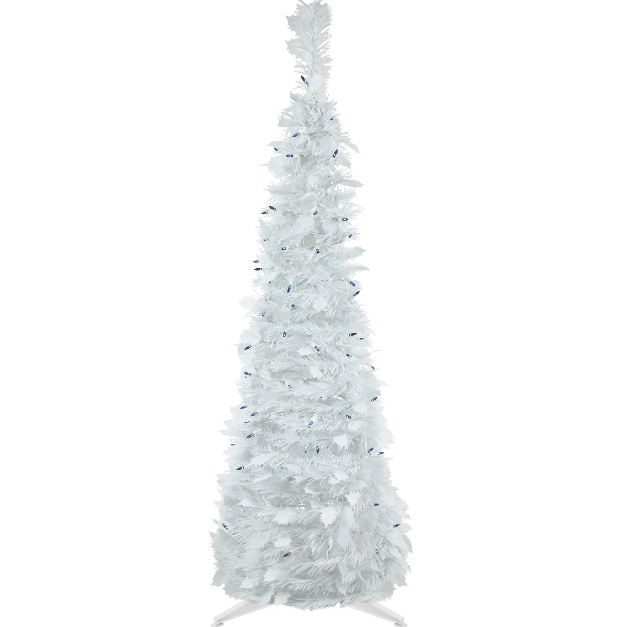 Northlight Pop Up Trees>4′ Pre-Lit White Tinsel Pop-Up Artificial Christmas Tree, Blue Lights
