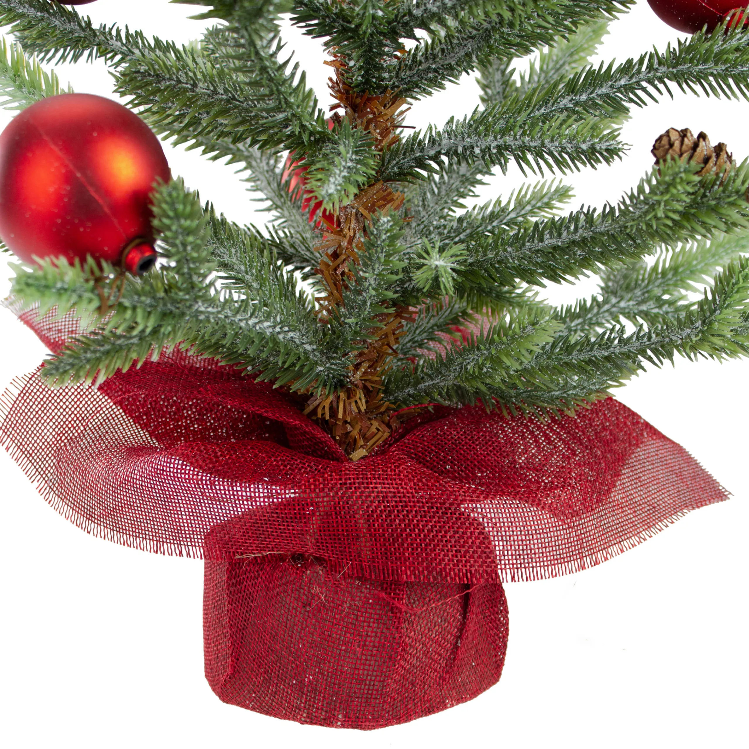 Northlight Potted Trees>18″ Potted Pine With Red Ornaments Medium Artificial Christmas Tree – Unlit