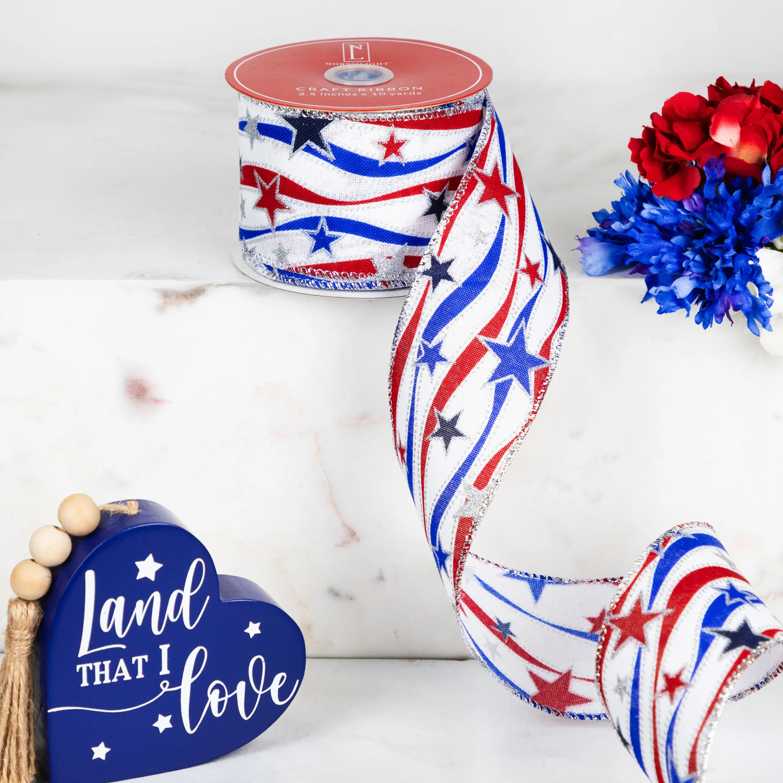 Northlight Red, White And Blue Striped Swirl Wired Patriotic Craft Ribbon 2.5In X 10 Yards