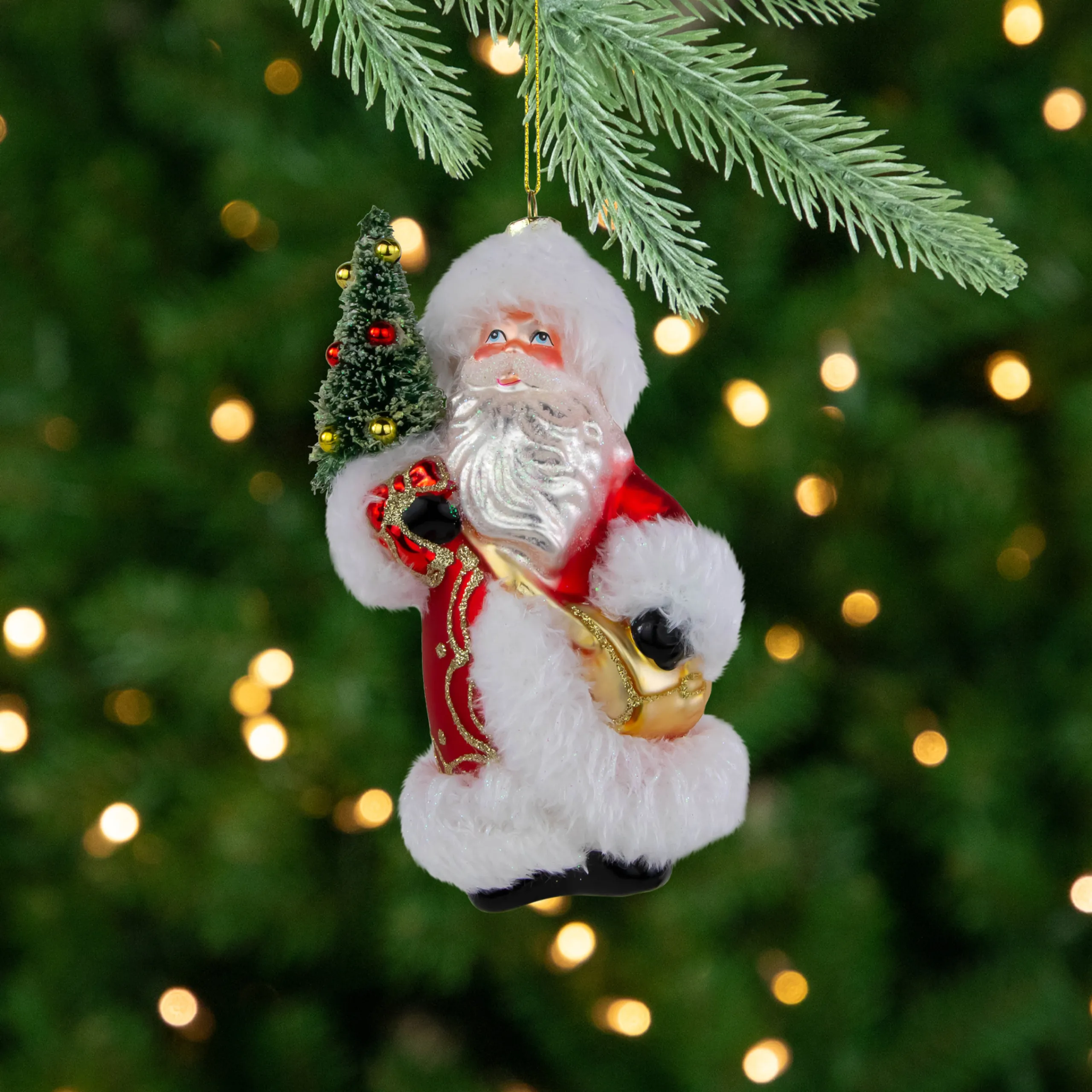Bring The Magic Of Christmas To Your Tree With This Delightful Santa Claus Christmas Ornament. Dressed In His Iconic Red And White Robe With Faux Fur Trim And Carrying A Gold Bag, This Jolly Saint Nick Is Ready To Deliver Presents To All The Good Boys And Girls. Adorned With A Frosted Tree Decorated With Red And Gold Balls, This Ornament Captures The Festive Spirit Of The Season. Perfect For Collectors And Christmas Enthusiasts Alike, This Santa Claus Christmas Ornament Is A Must-Have Addition To Your Holiday Collection.