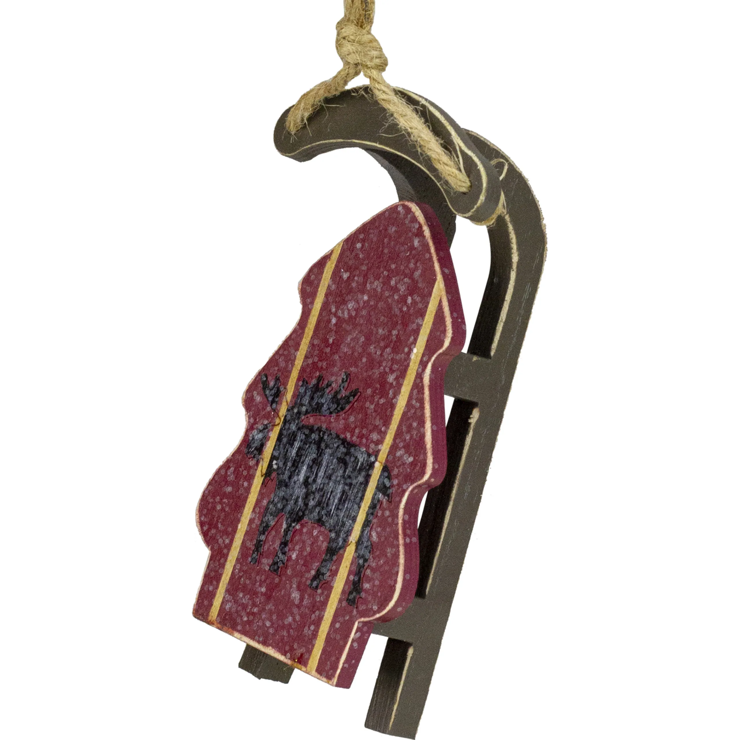 Northlight Sleighs>5.5″ Red And Black Moose Silhouette Sleigh Christmas Ornament