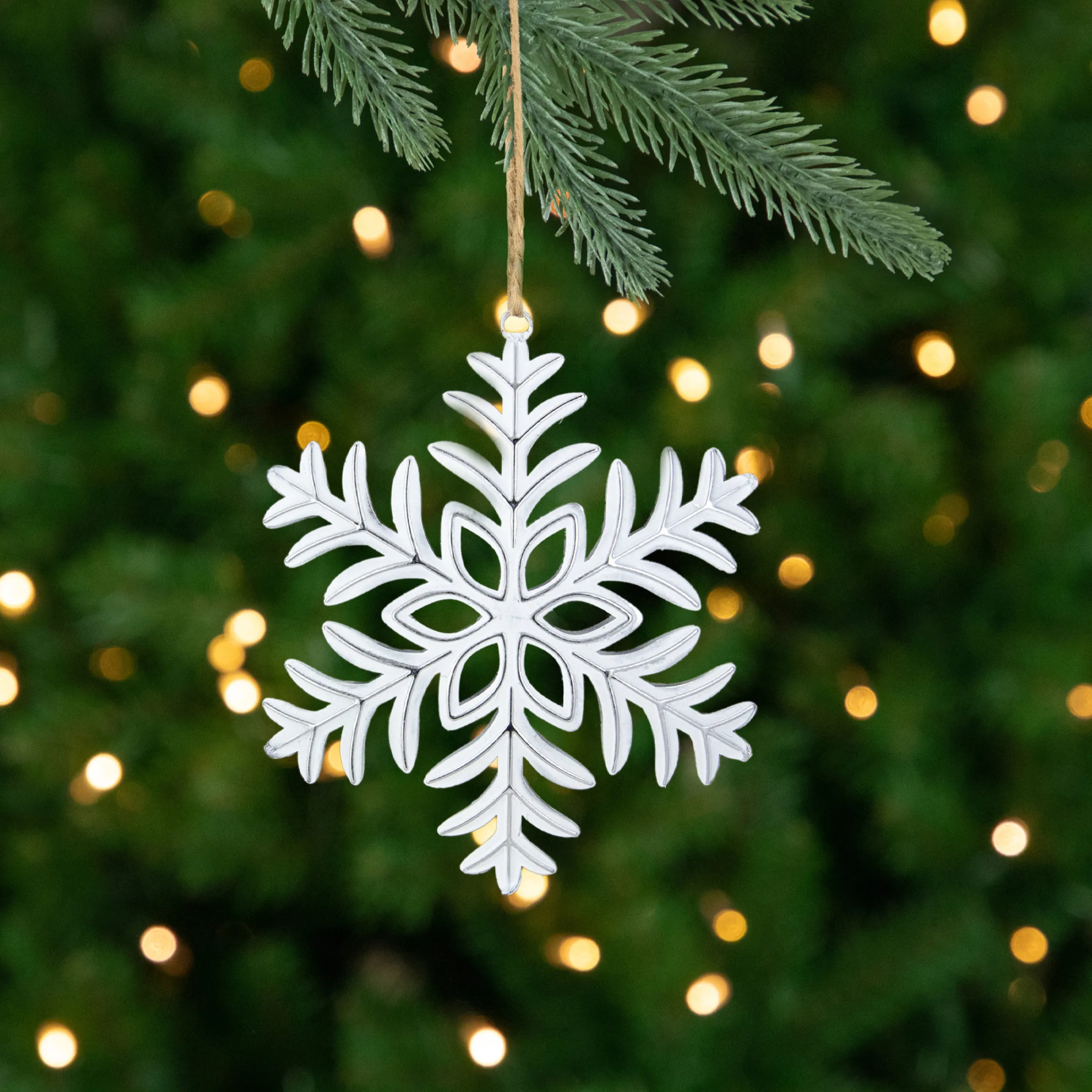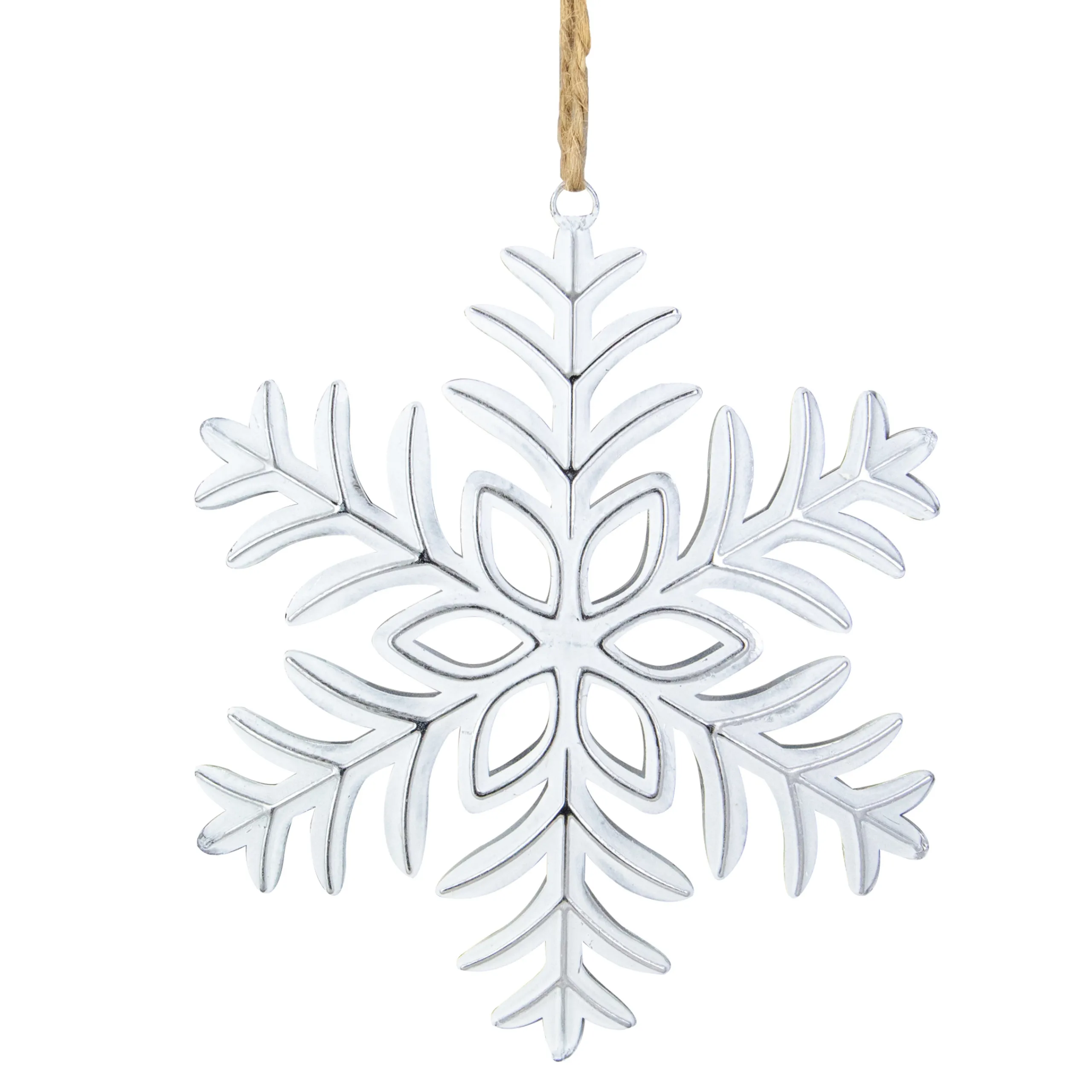 Add This Metal Snowflake Ornament To Your Tree For A Unique And Chic Look. Features A White Snowflake With Silver Detail. 2-D Design Adds Dimension. Perfect For Holiday And Winter Decorating.