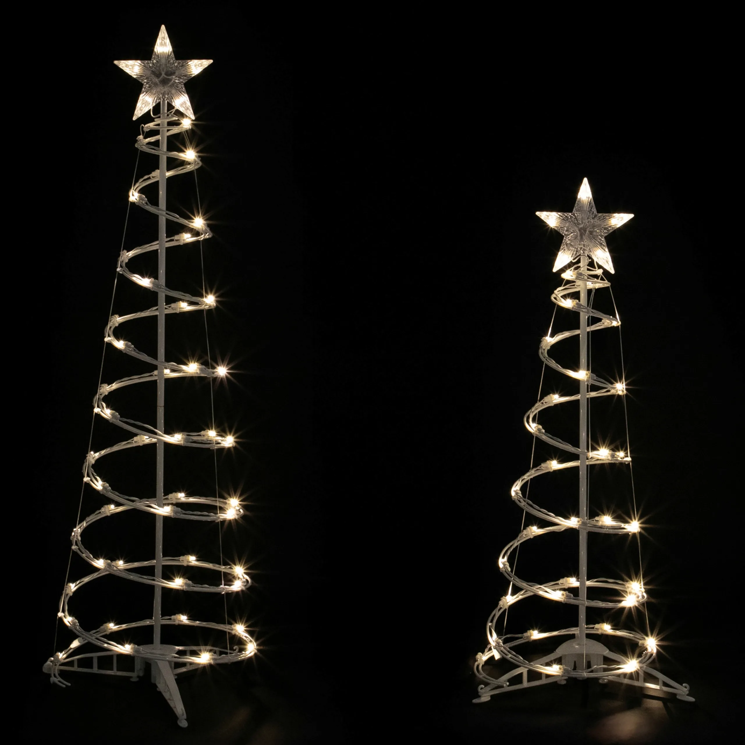 Northlight Spiral Trees>Set Of 2 Led Lighted Warm White Outdoor Spiral Christmas Cone Trees 3′, 4′