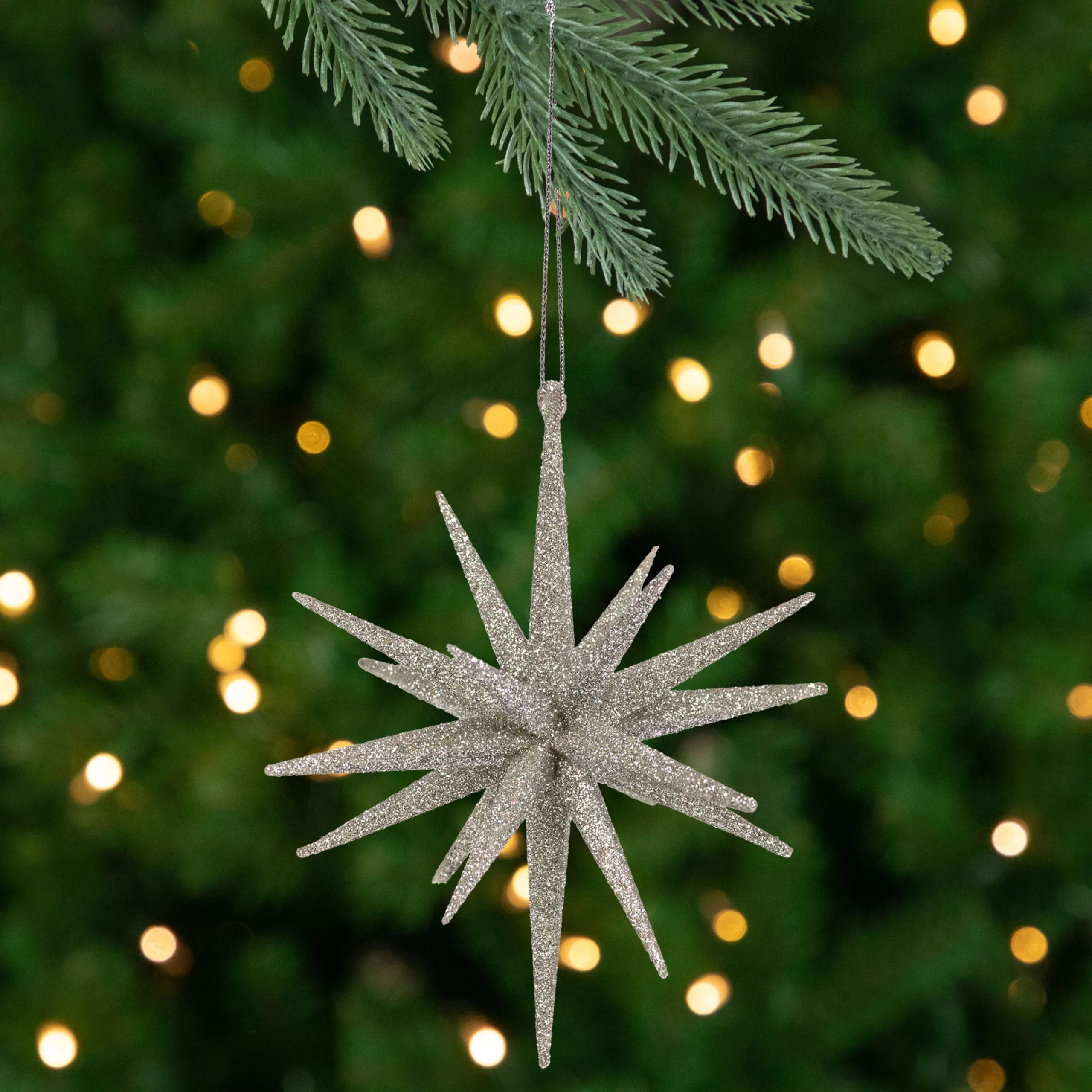 Northlight Stars>6″ Silver Sparkling Starburst Hanging Christmas Ornament