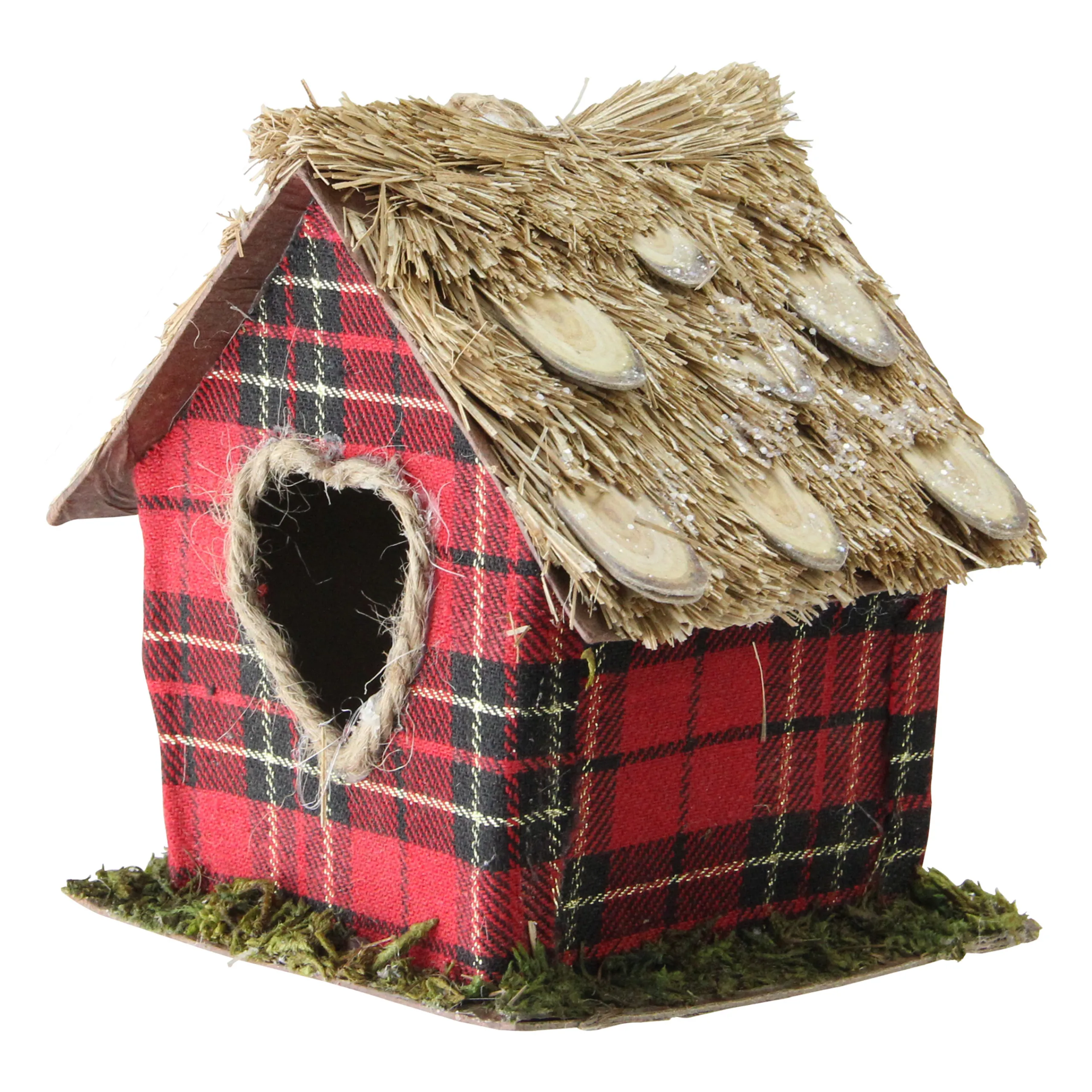 Northlight Woodland>5.25″ Red Plaid Christmas Birdhouse Ornament With Heart Shaped Door