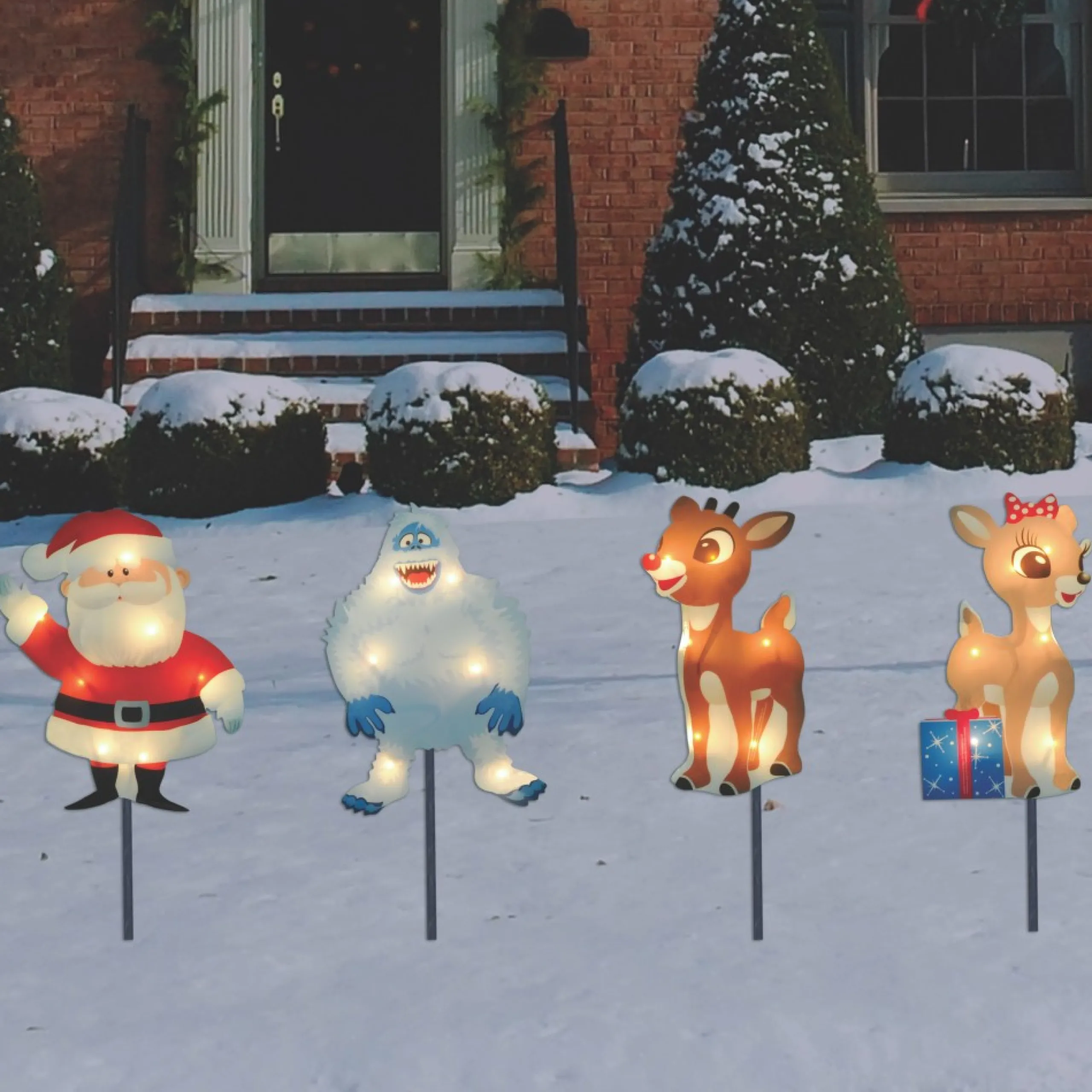 Rudolph, Santa, Bumble And Clarice Christmas Pathway Markers