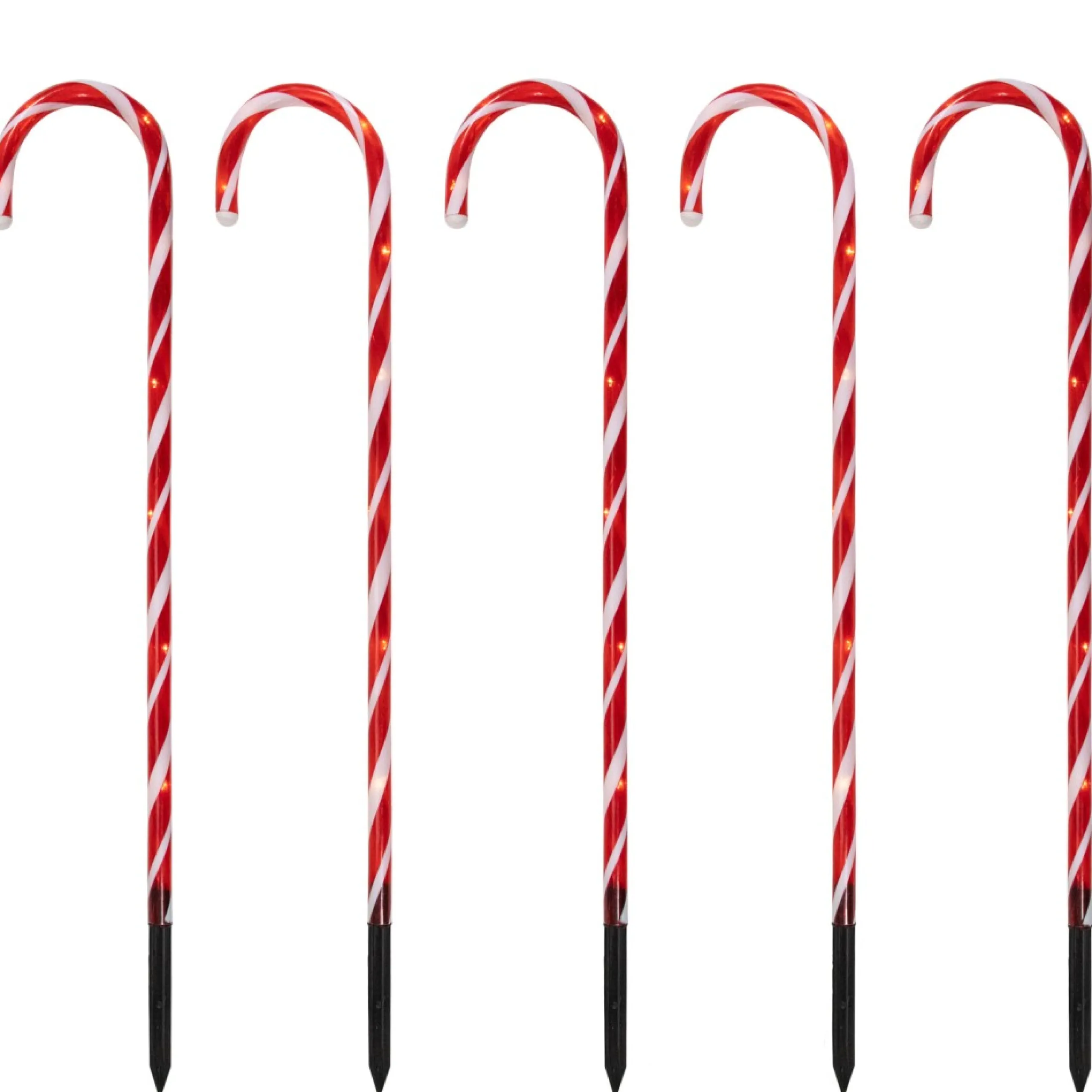 Outdoor Decorations*Northlight Set Of 5 Red Lighted Candy Cane Christmas Lawn Stakes 28″