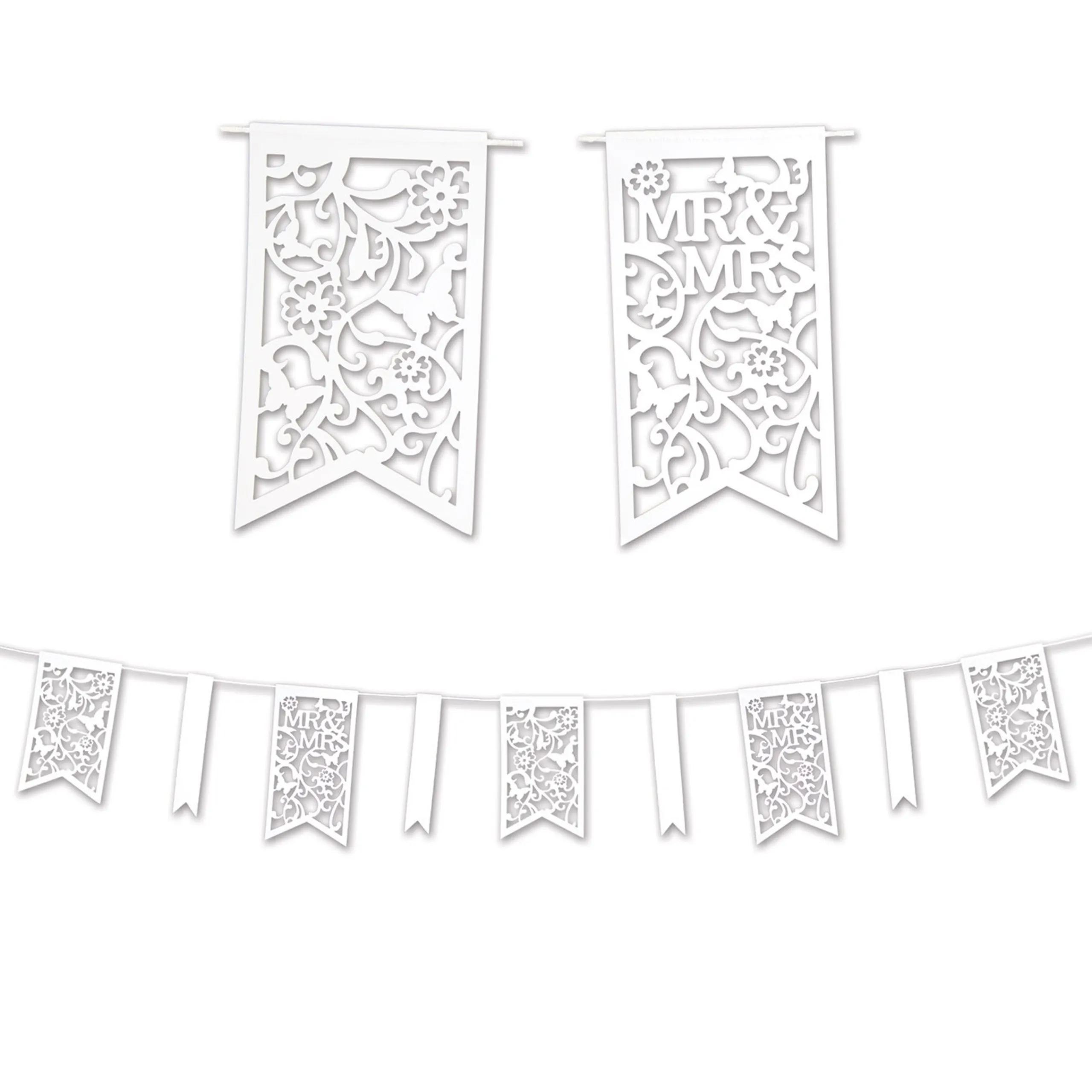 Comes With Twenty-Seven White Assorted Die-Cut ‘Mr And Mrs’ Hanging Pennant