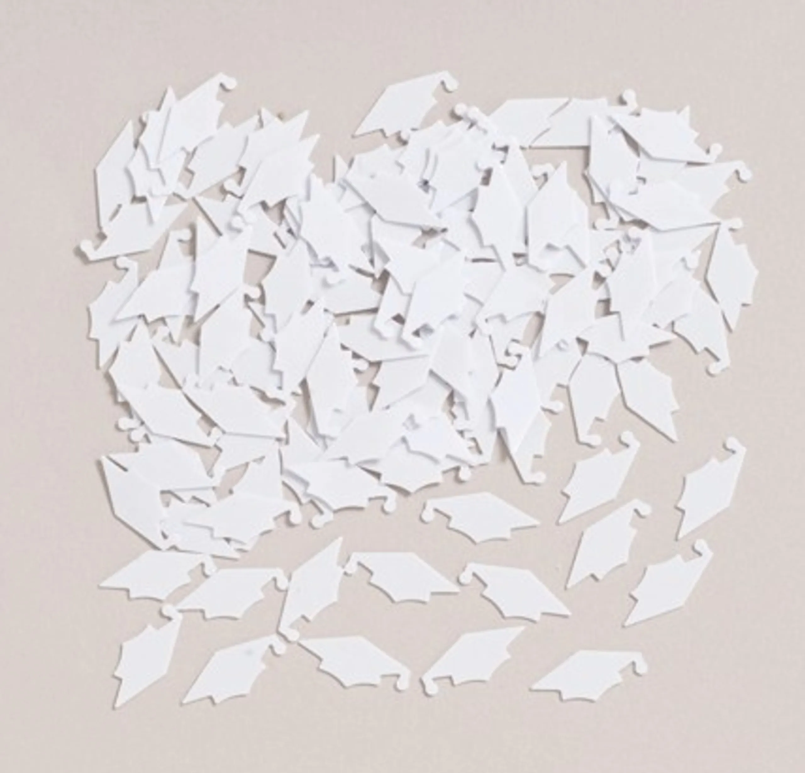 Party Central Club Pack Of 12 White Mortarboard Cap Hat Shaped Graduation Day Celebration Confetti Bags 0.5 Oz.
