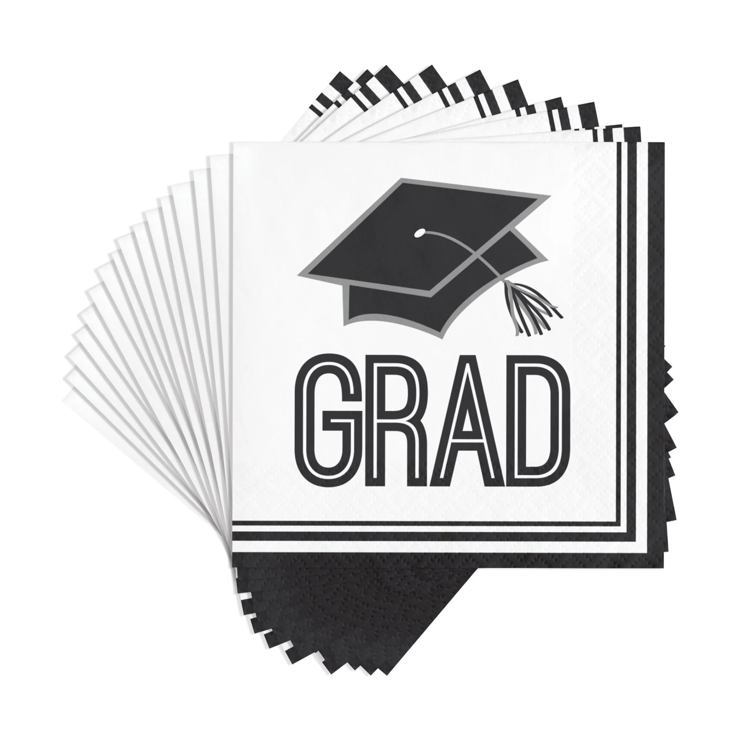 White And Black 2-Ply School Spirit Beverage Disposable Party Napkins