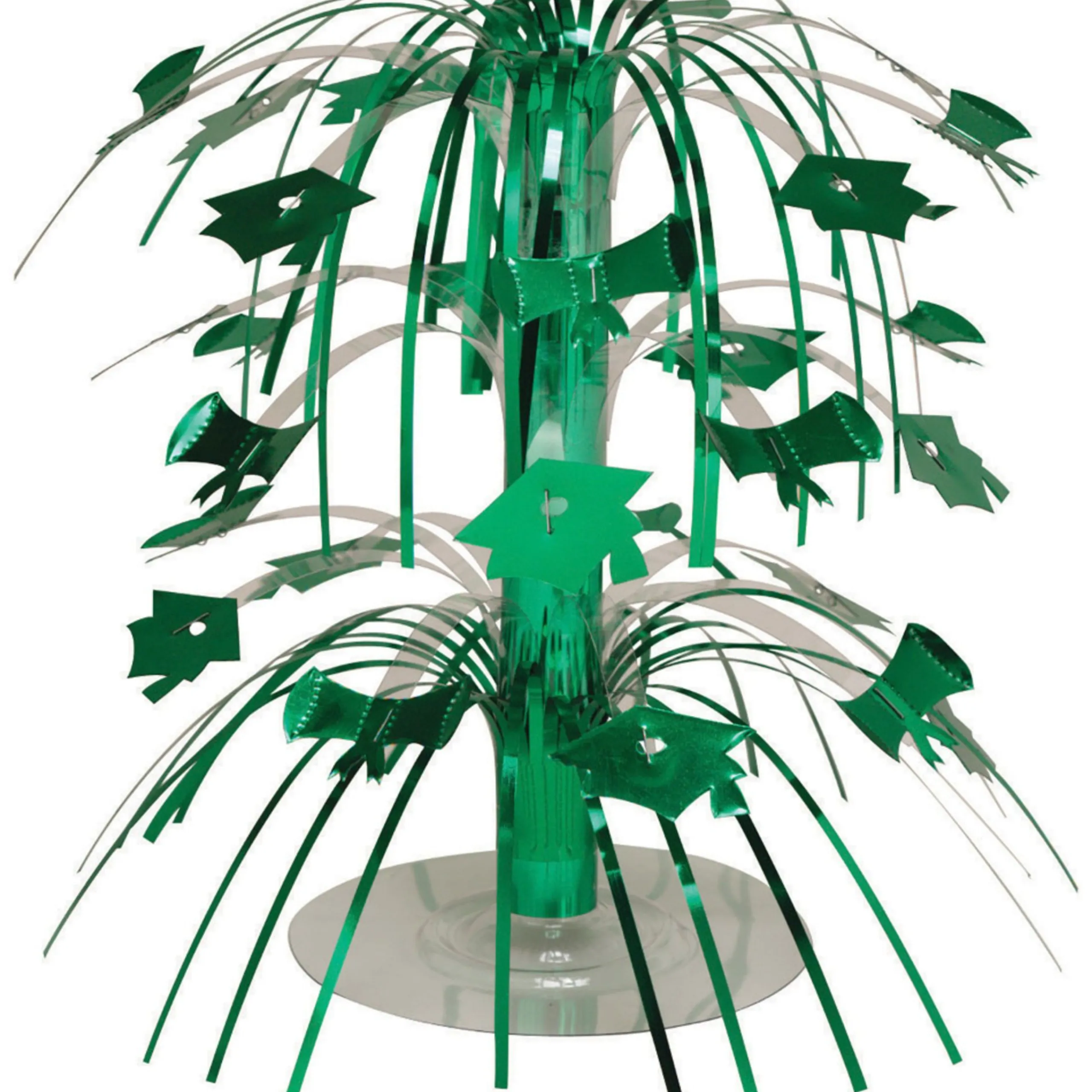Foil Centerpieces Each Feature Green Graduation Cap Accents