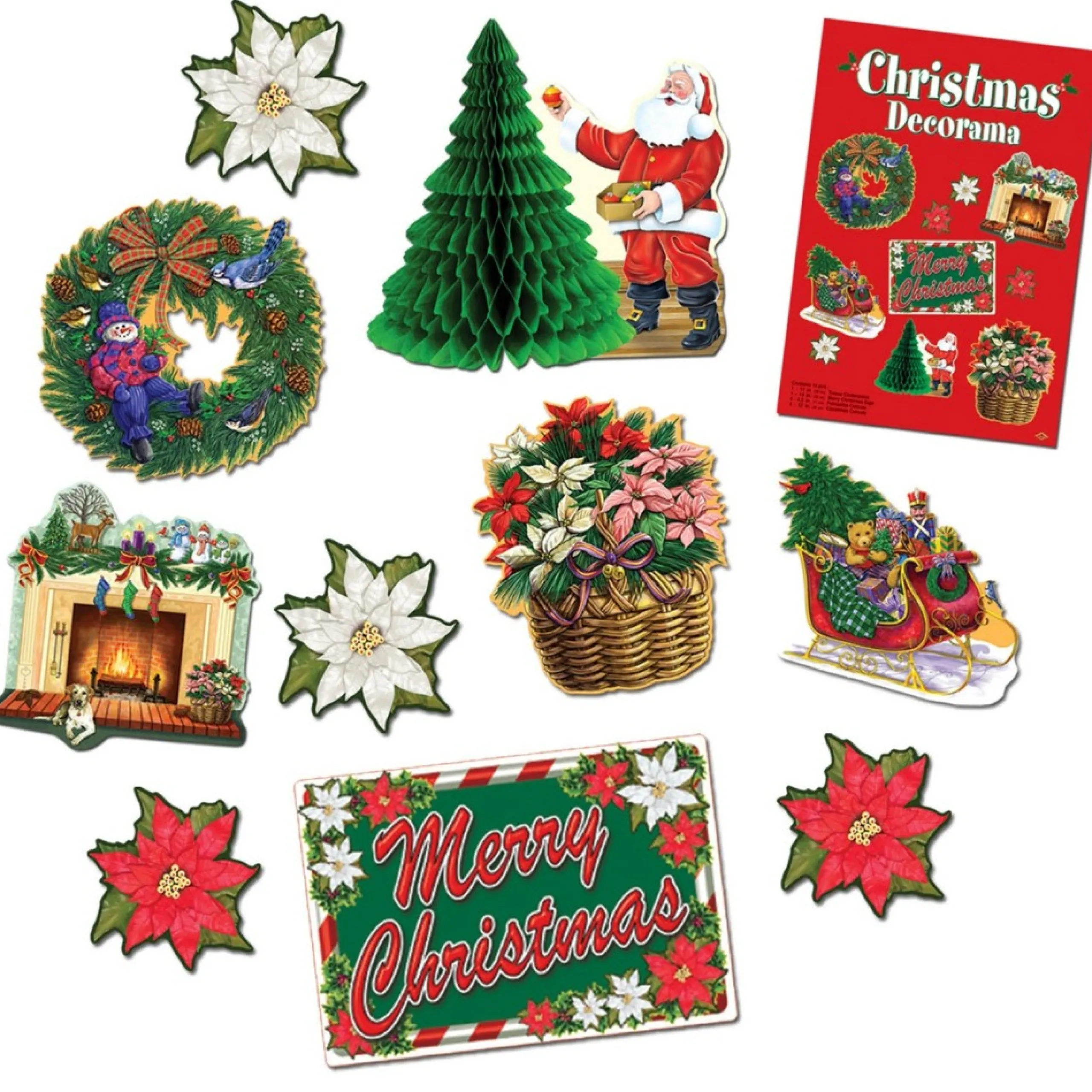 Party Supplies*Beistle Club Pack Of 60 Santa Claus, Wreath, Tree And Fireplace Christmas Decorama Cutout Decorations