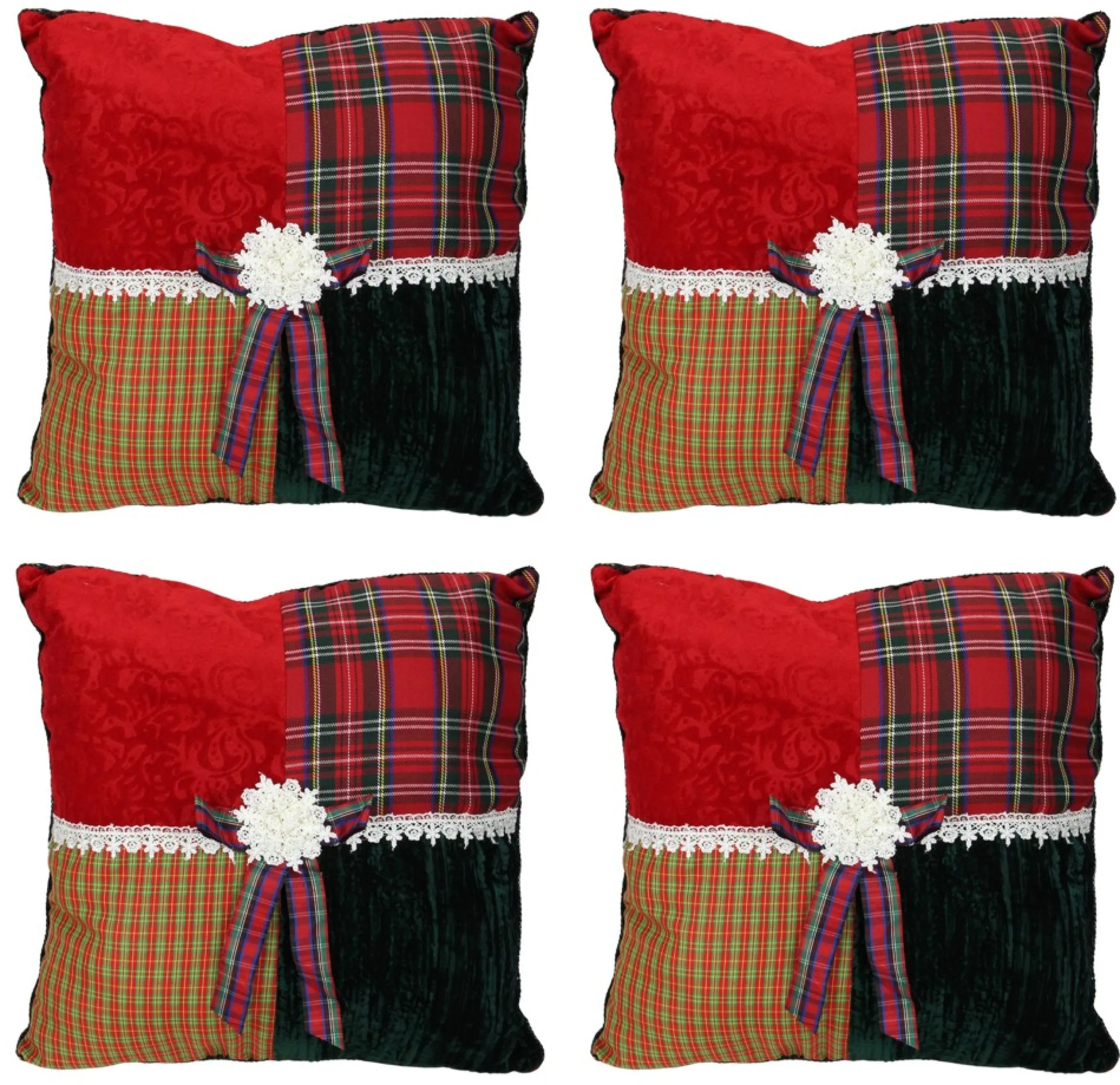Pillows & Throws*CC Christmas Decor Set Of 4 Square Textured Tartan Plaid Velvet Christmas Throw Pillows 15.5″
