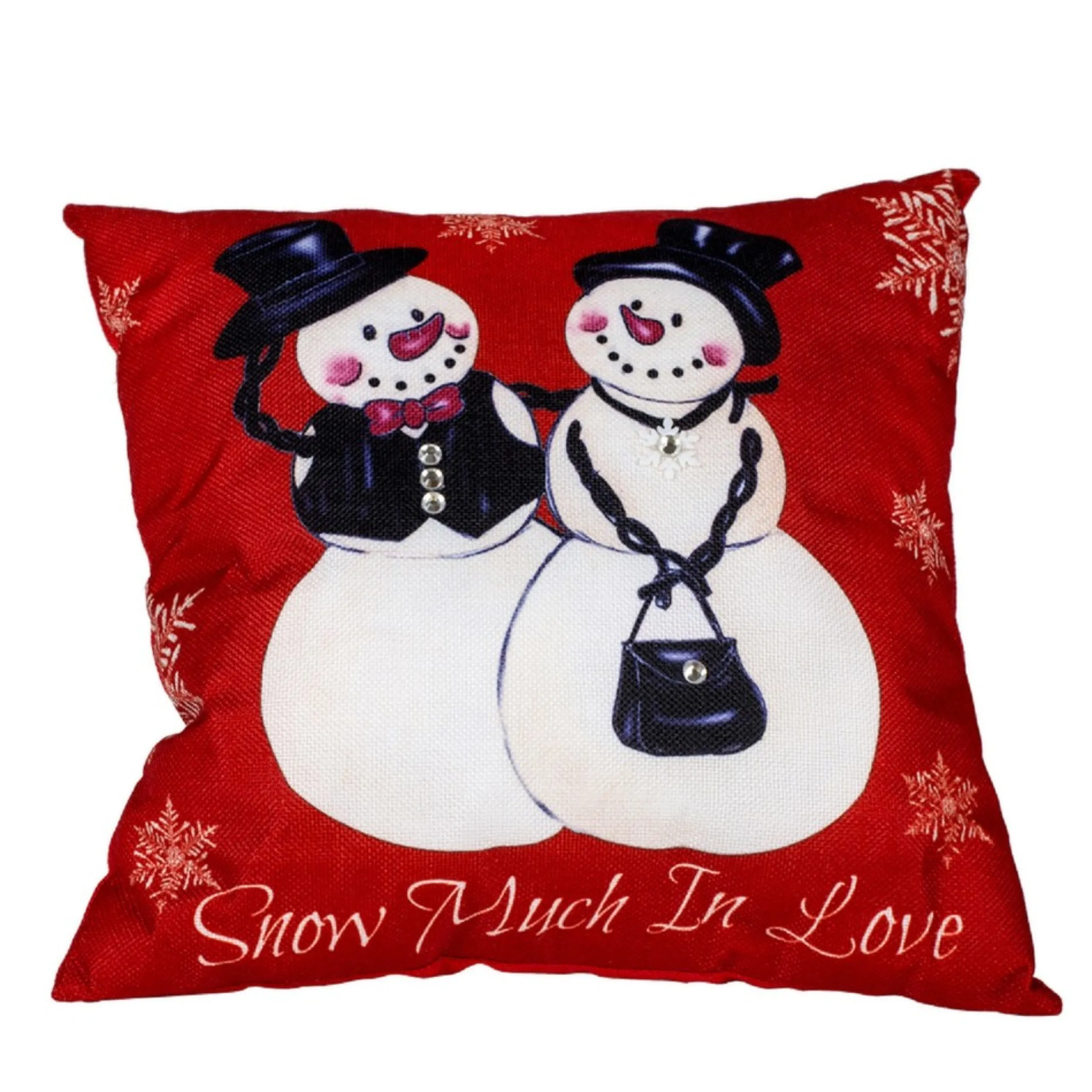 Pillows & Throws*Contemporary Home Living 13″ Red And White “Snow Much In Love” Mr & Mrs Snowman Throw Pillow