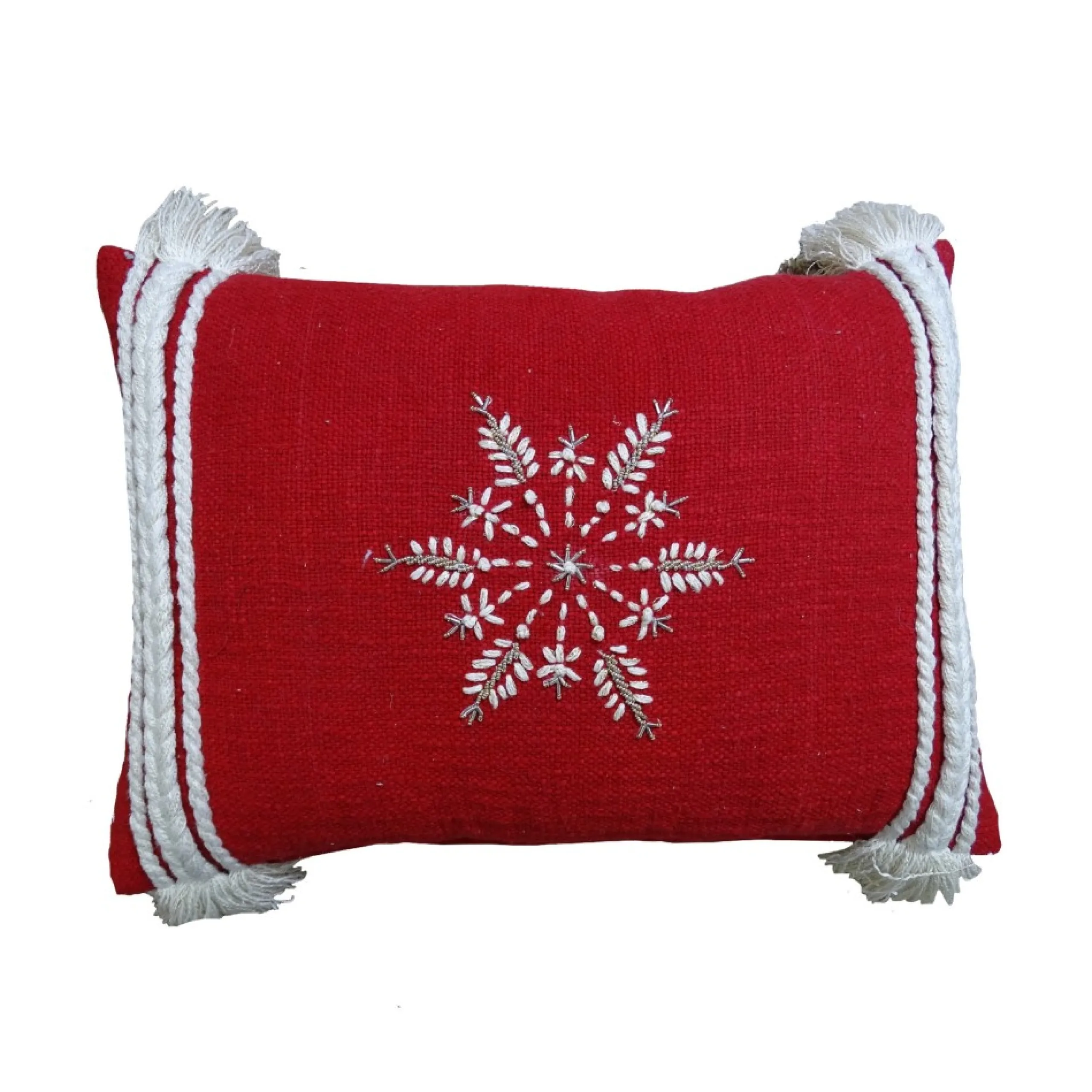 Pillows & Throws*Contemporary Home Living 20″ White And Red Snowflake Christmas Throw Pillow For Sofa
