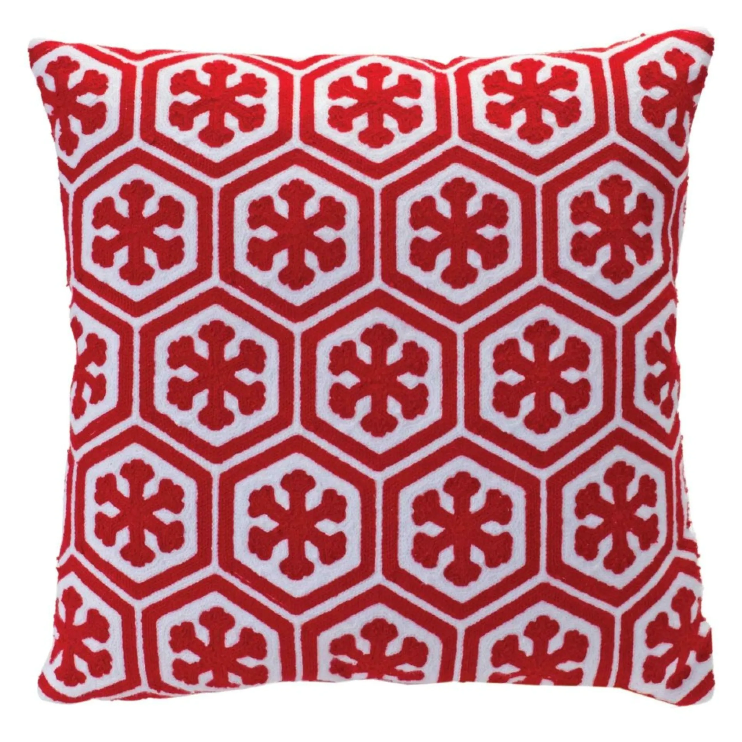Pillows & Throws*Melrose 17.25″ Red And White Snowflake Cotton Christmas Throw Pillow