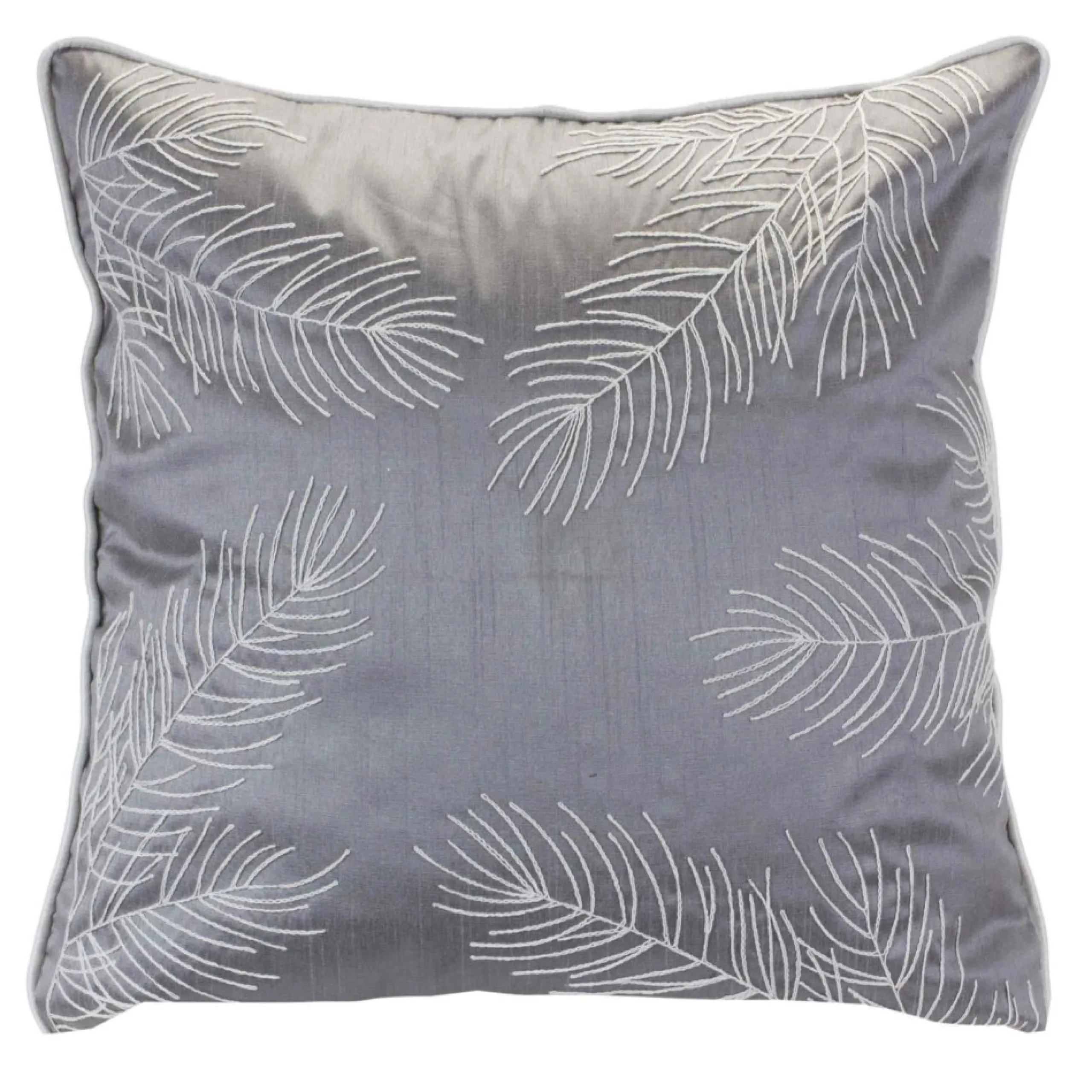 Pillows & Throws*Melrose 17″ Silver And White Embroidered Pine Branch Square Christmas Throw Pillow