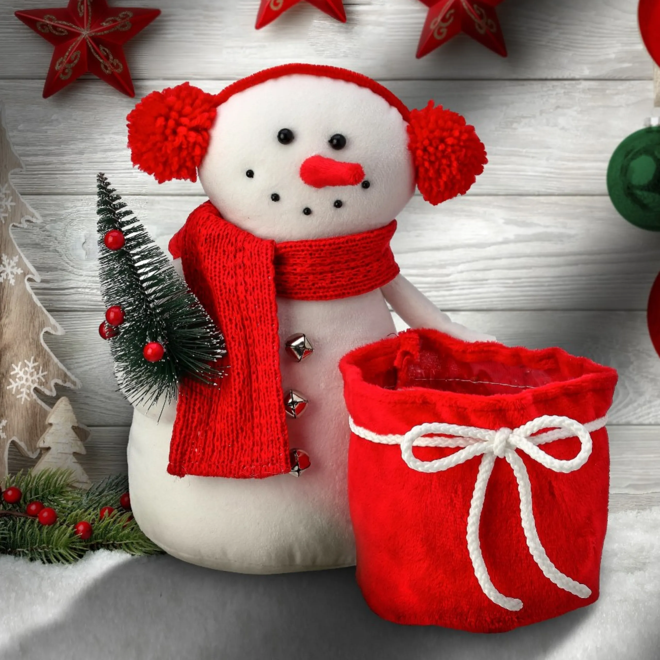 Get Into The Winter Spirit With This Charming Snowman Plush Figure. With Its White, Red, Green, And Black Hues, It Adds A Delightful Touch To Any Space. Use The Included Pot Holder To Showcase Plants Or Fill It With Holiday Treats For A Whimsical Decoration That Will Bring Joy To Children And Guests. Complete With Red Earmuffs And Scarf, This Snowman Even Holds A Miniature Christmas Tree Adorned With Ornaments For An Extra Festive Touch.