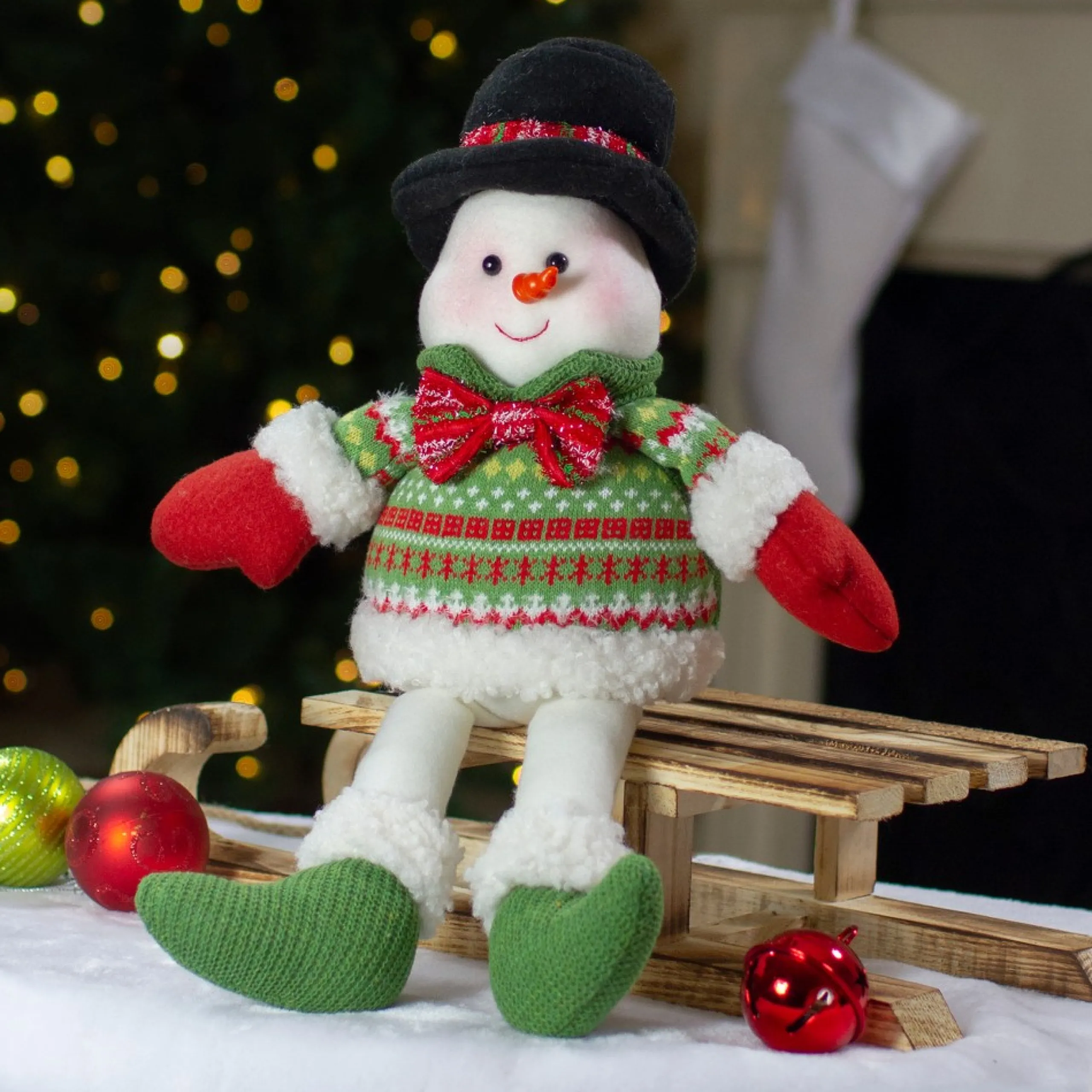 This Darling Plush Snowman Is The Perfect Accent Piece For Your Mantel Or Wall Shelf. Looking Whimsical He Sits Dressed In Red And Green Knit Outfit, With His Traditional Top Hat. It Looks Like You’Ve Found Yourself A Partner To Sit With And Laze Around All Day!