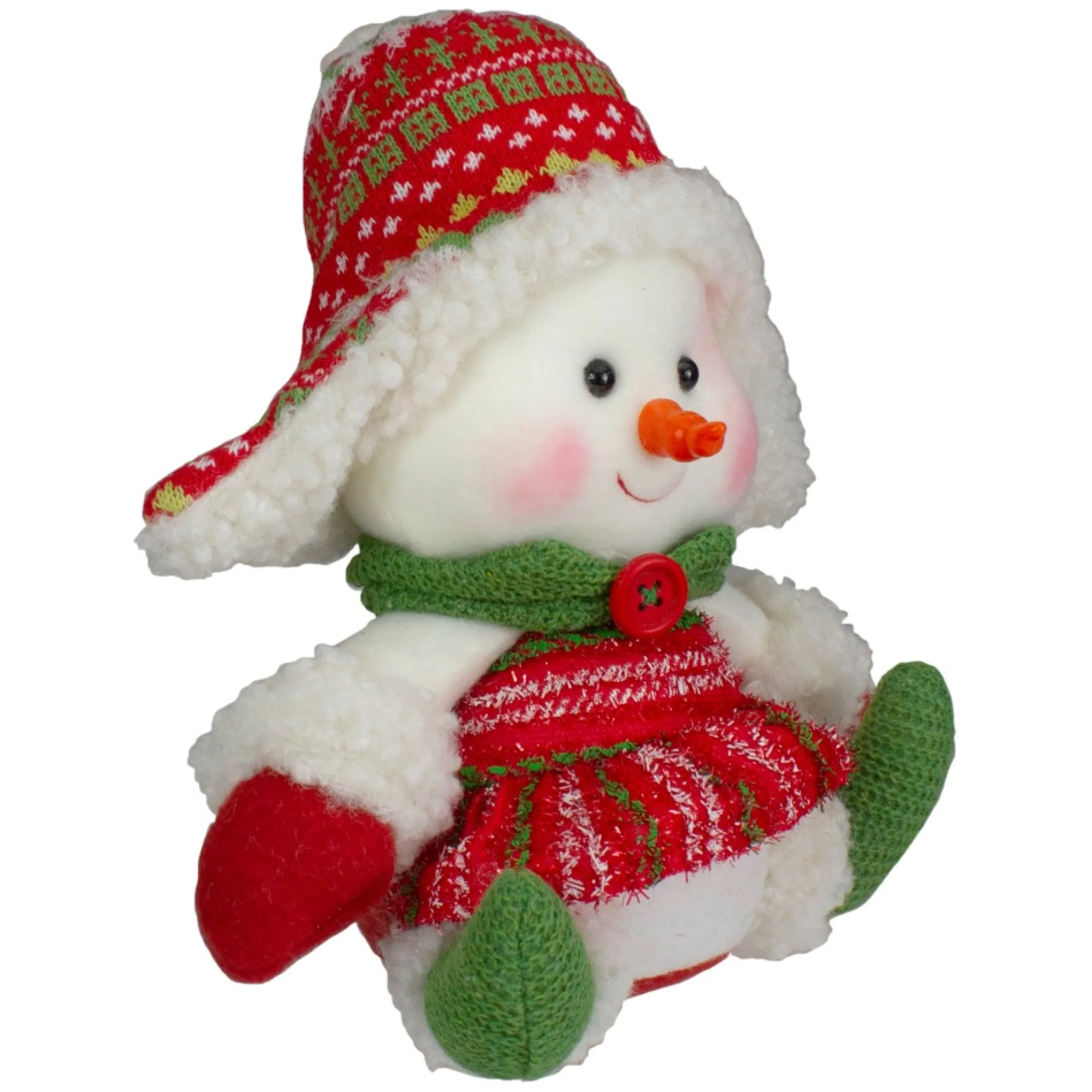 Plush Figures*Northlight 8″ Red And Green Sitting Snowman Girl Christmas Figure
