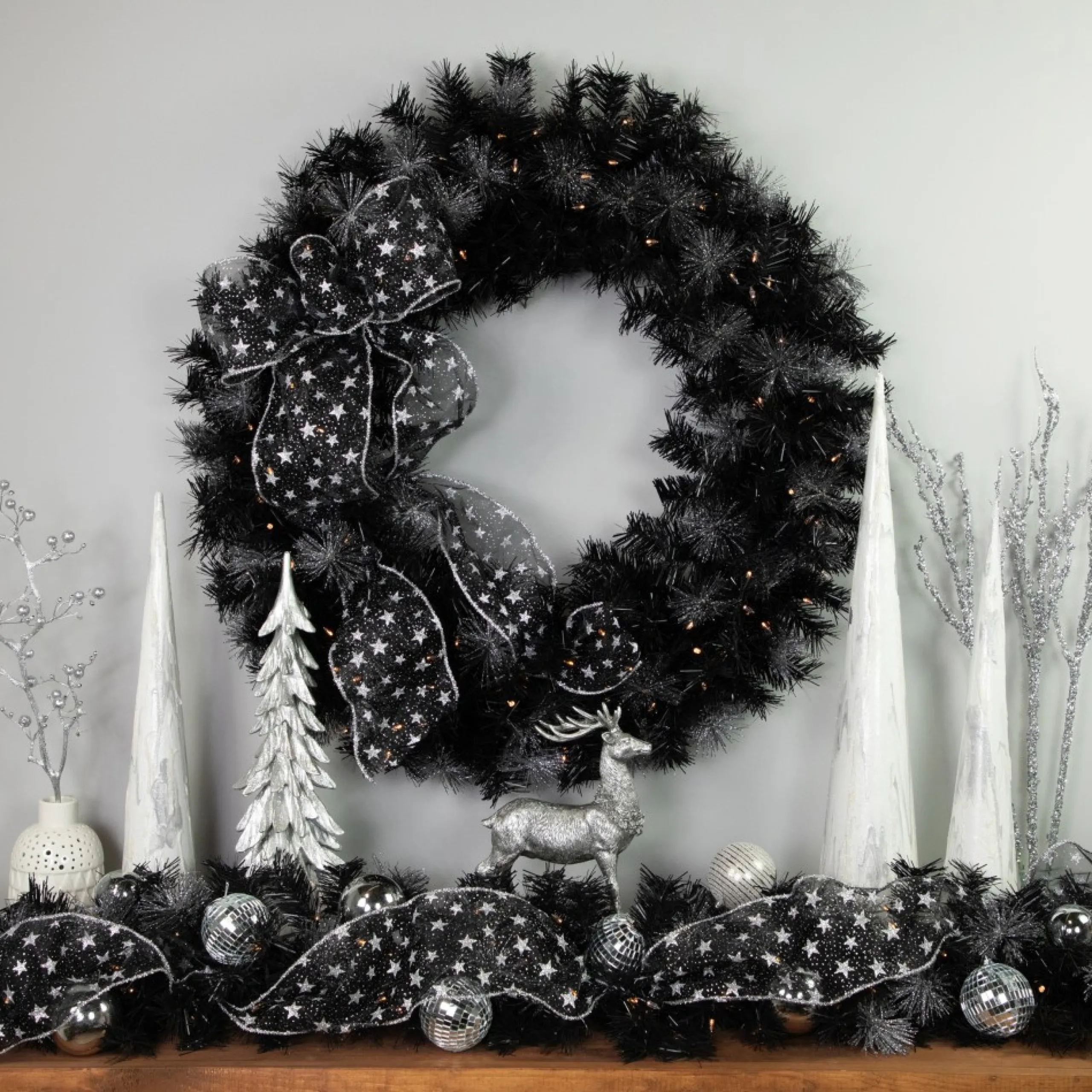 Embrace The Enchanting Beauty Of The Holiday Season With This Black And Silver Christmas Wreath. This Wreath Is Carefully Crafted To Captivate Your Guests With Its Sophisticated Design And Stunning Silver Glitter Accents. Adorned With Warm White Led Lights, It Radiates A Soft And Inviting Glow That Adds Warmth To Any Space. Perfect For Both Indoor And Outdoor Display, This Wreath Effortlessly Blends Timeless Elegance With Modern Charm. Let The Black Bristle Artificial Christmas Wreath Be The Centerpiece Of Your Festive Decor, Creating A Magical Atmosphere That Will Leave Everyone In Awe