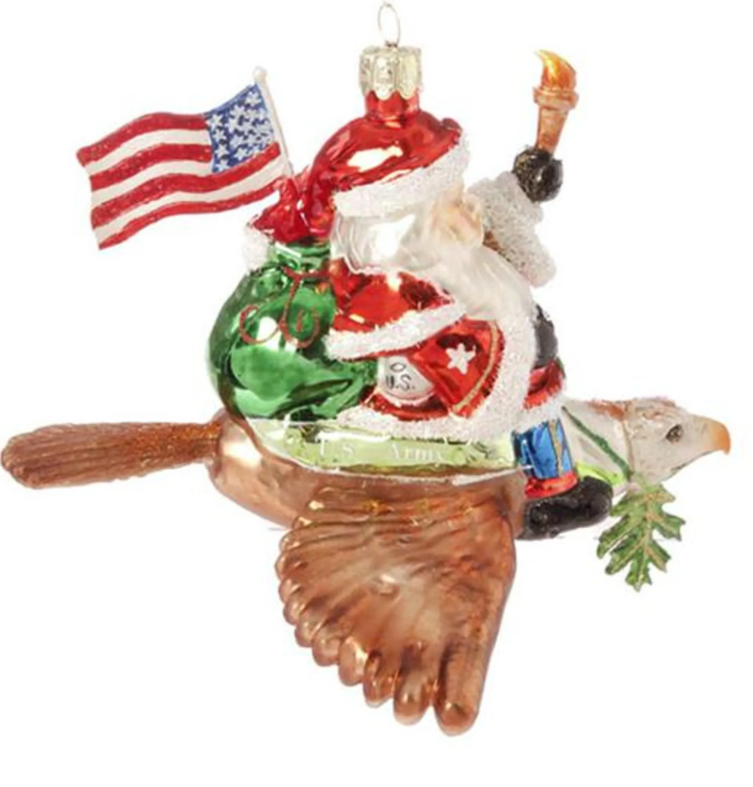 Be Ready To Offer A Warm Welcome, As The Master Of Enchanting People Is Visiting Your Home! While Showing His Respect For The American Army, This Santa Comes Donned Up In An Eye-Pleasing Attire And Brings In A Nationalistic Touch To Your Holiday Decor. Add This Impressive Ornament To Your Decorations And Start Your Festival Celebrations.