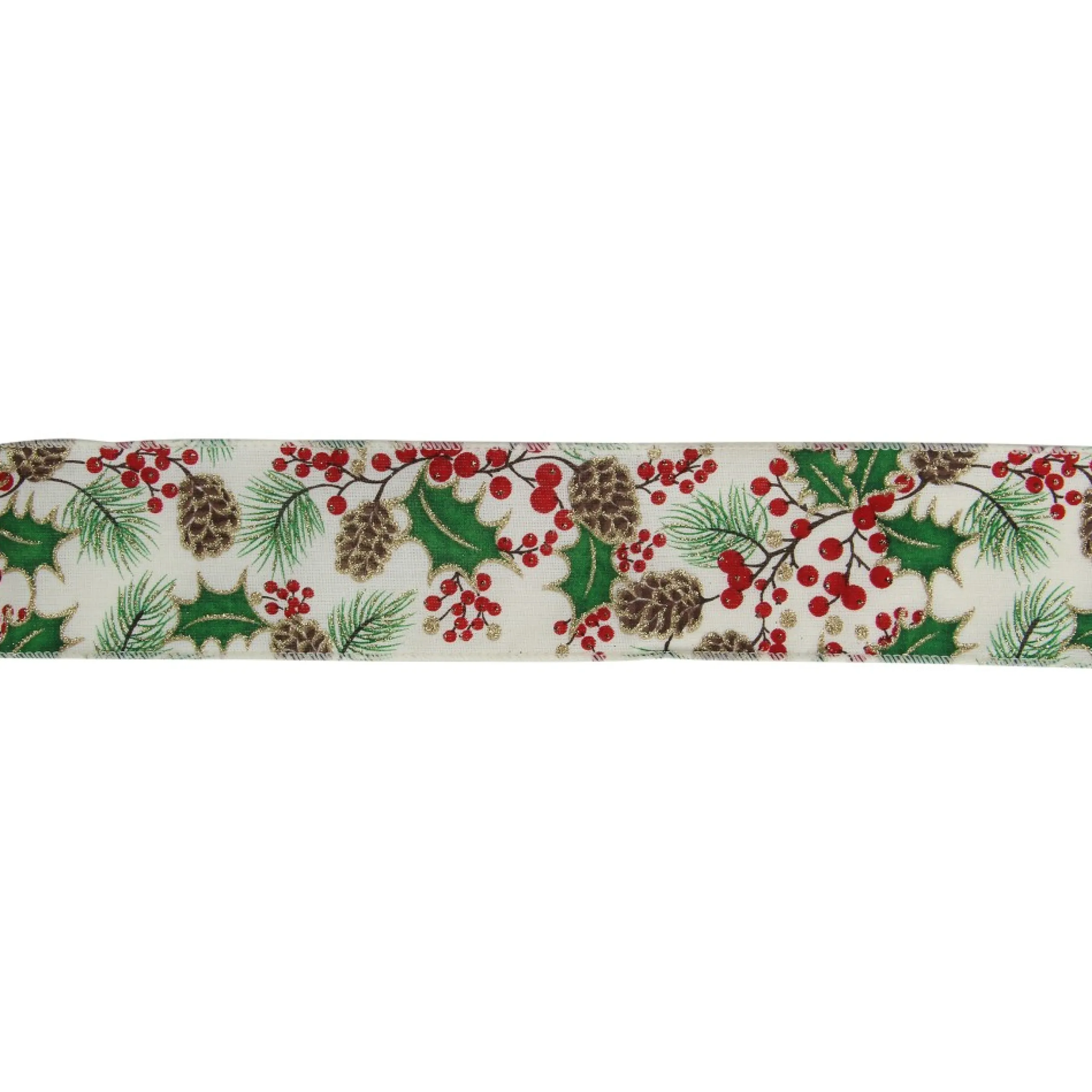 This Festive Pine Cone And Berry Cream Ribbon With Gold Glitter Is Great For Decorating Your Gifts And Home For The Holiday Season. This Wired Ribbon Will Help Everyday Designs Maintain Their Shape And Beauty. Whether You’Re A Florist An Event Planner Or Crafter, Wired Edge Ribbon Is A Dream To Work With. Add This Ribbon To Your Christmas Tree, Mantle Or Stairway To Add Sparkle And Shine To Your Home For The Holiday Season.