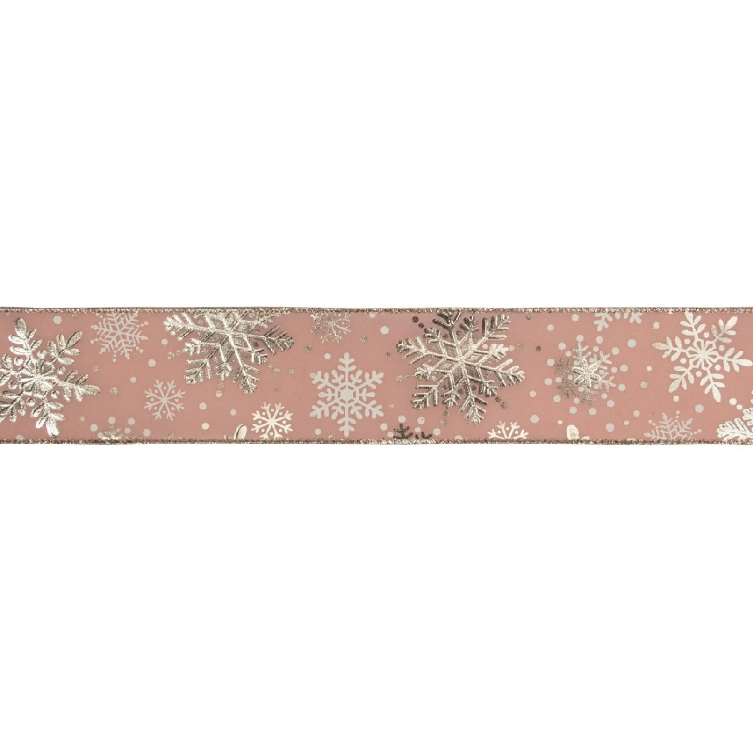 Ribbon*Northlight Pink And Gold Snowflake Christmas Wired Craft Ribbon 2.5″ X 10 Yards