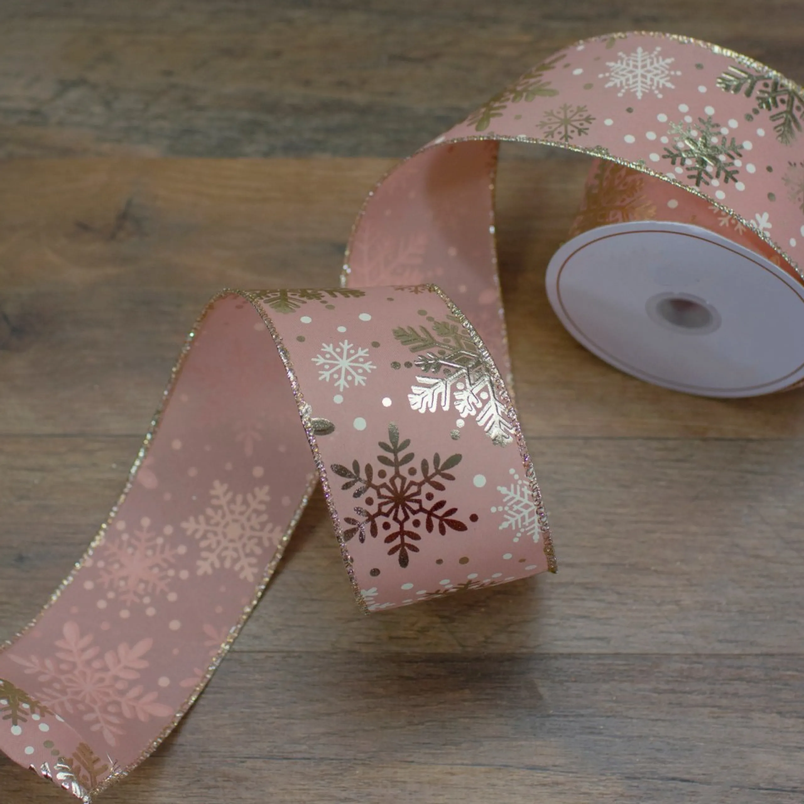 Pink And Gold Snowflake Christmas Crafting Ribbon