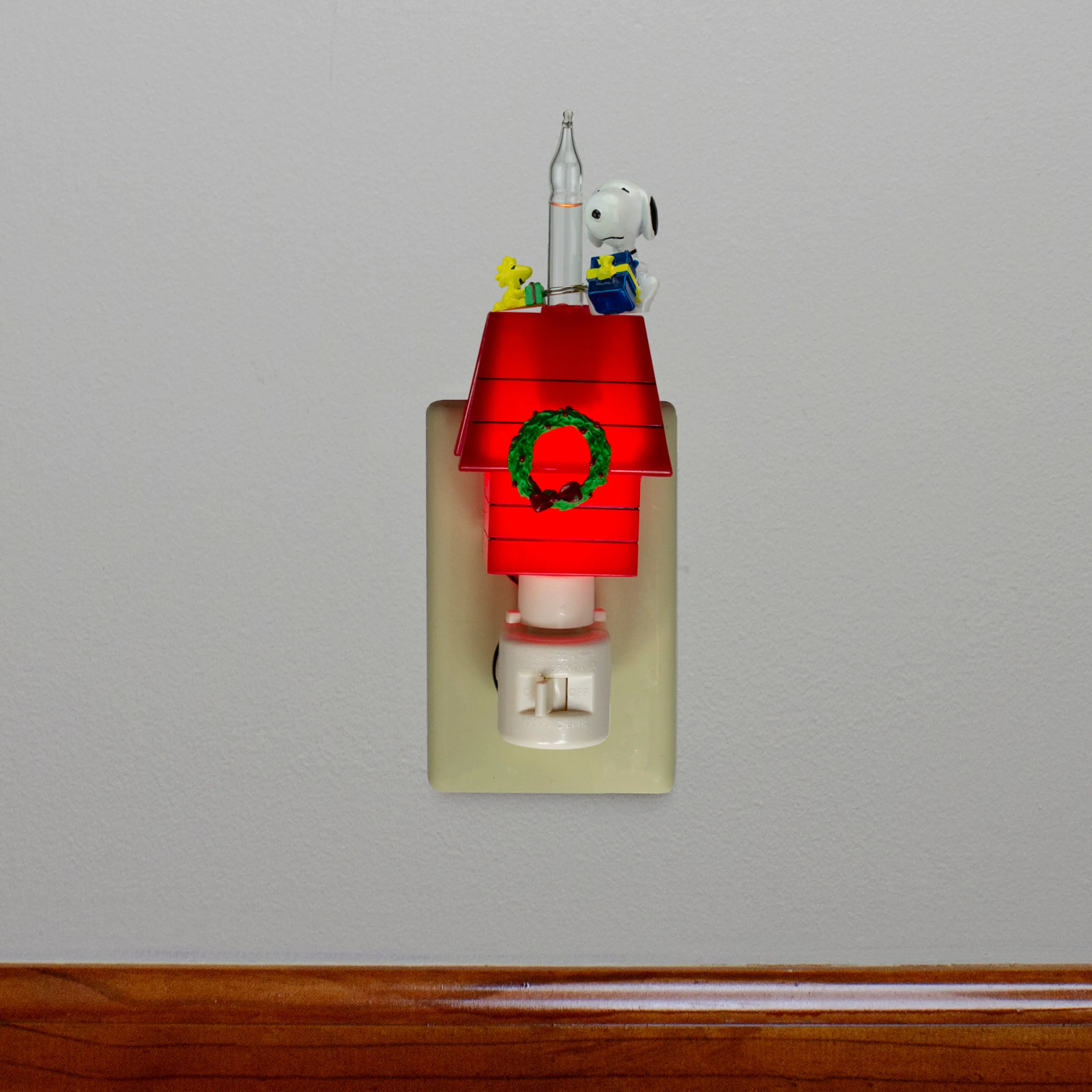 Roman 7.25″ White Peanuts Snoopy And Woodstock Doghouse Christmas Bubble Night Light