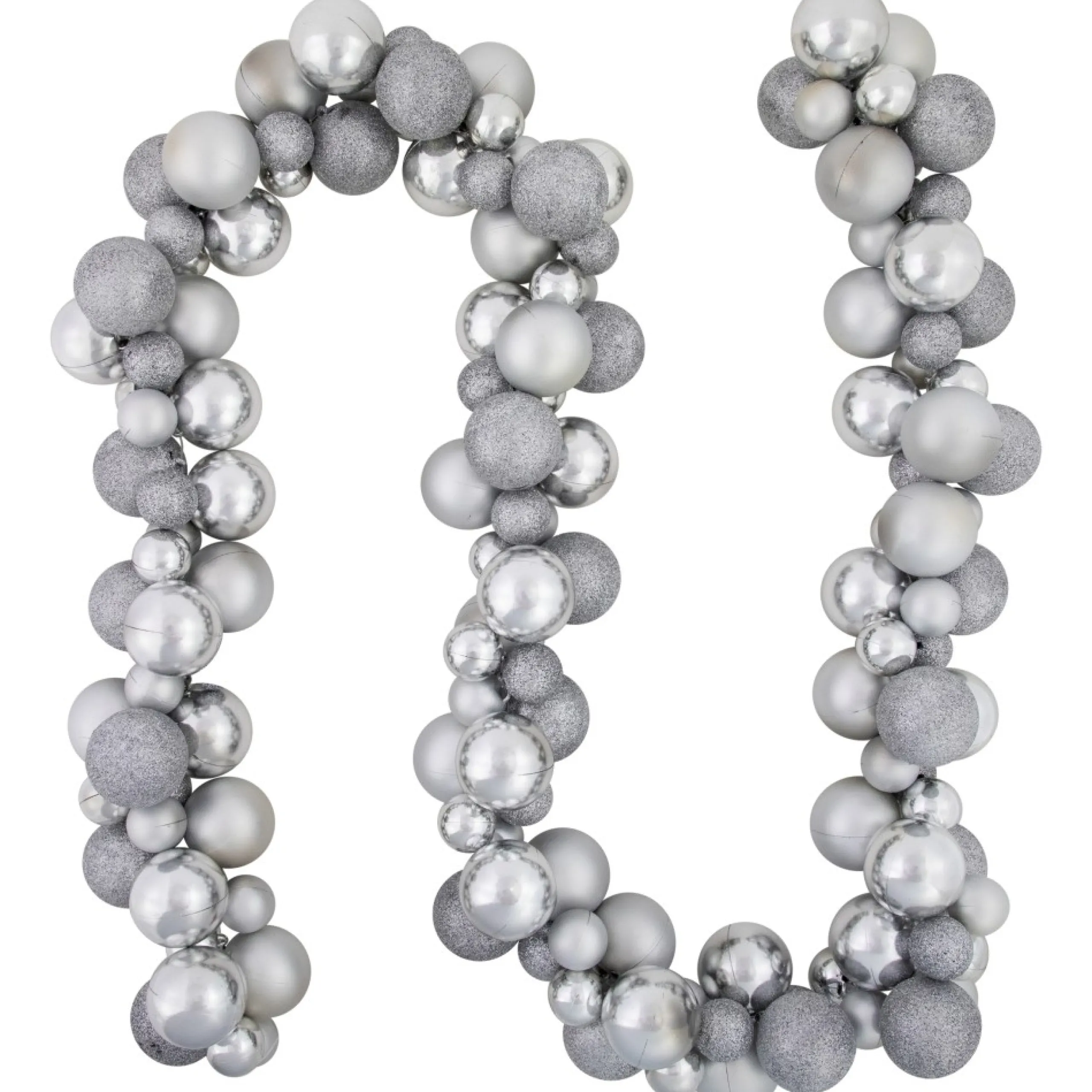 Shatterproof Ball Garland*Northlight 6′ Silver Shatterproof Ball 3-Finish Christmas Garland