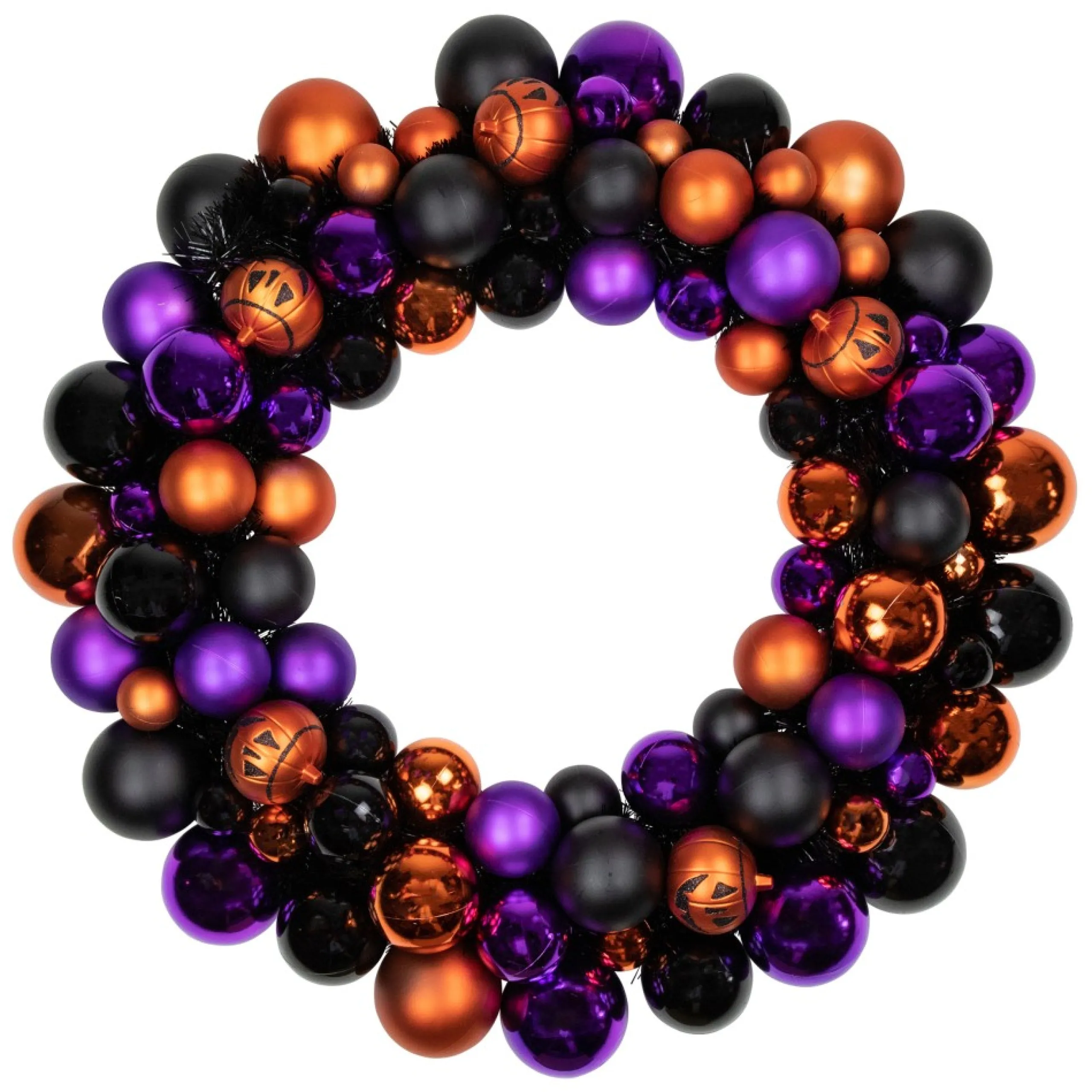 Shatterproof Ball Wreaths*Northlight Jack-O-Lantern Shatterproof Ball Ornament Halloween Wreath – 24-Inch, Unlit