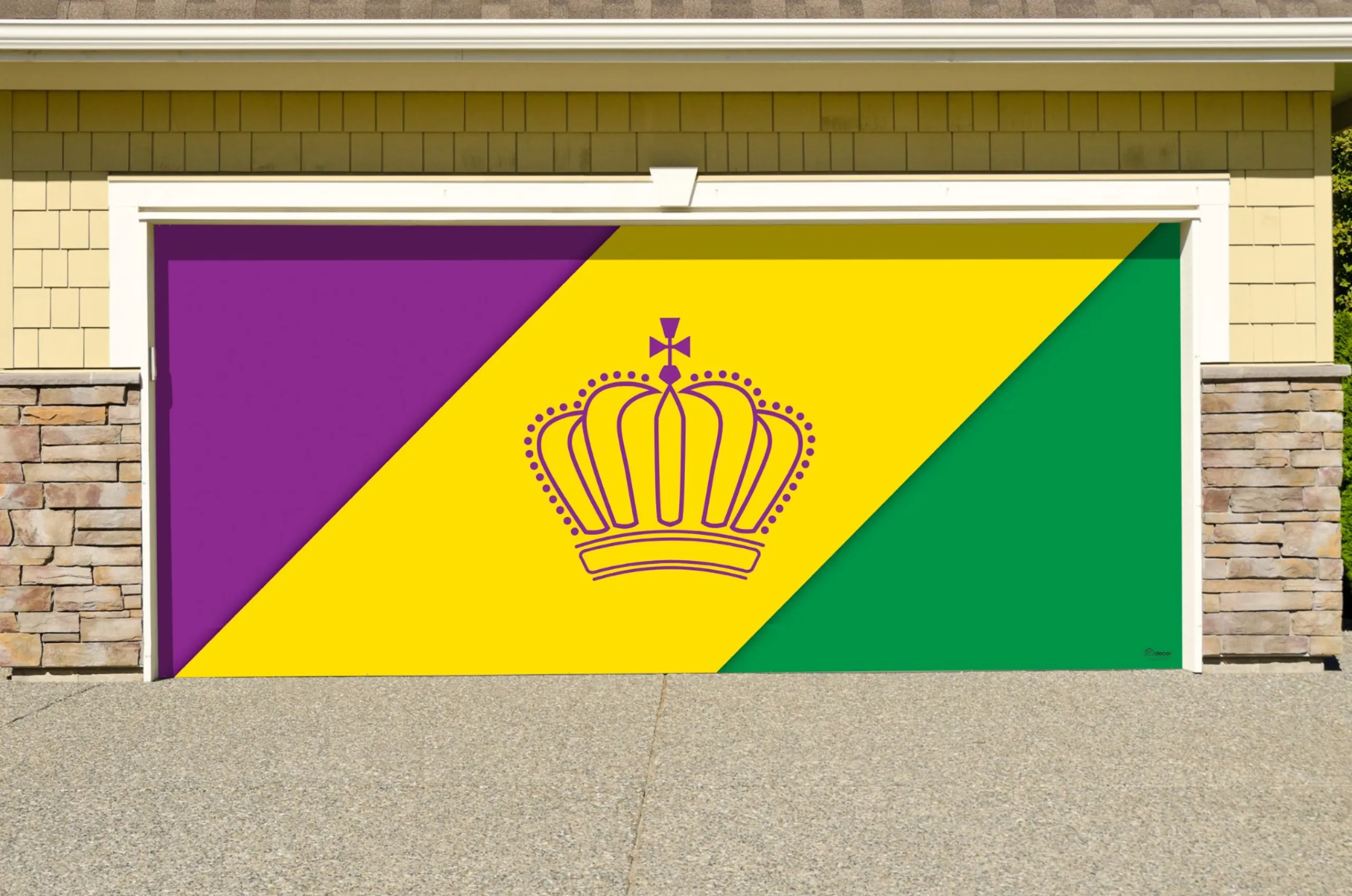 Showdown Displays 7′ X 16′ Yellow And Green Mardi Gras Double Car Garage Door Banner