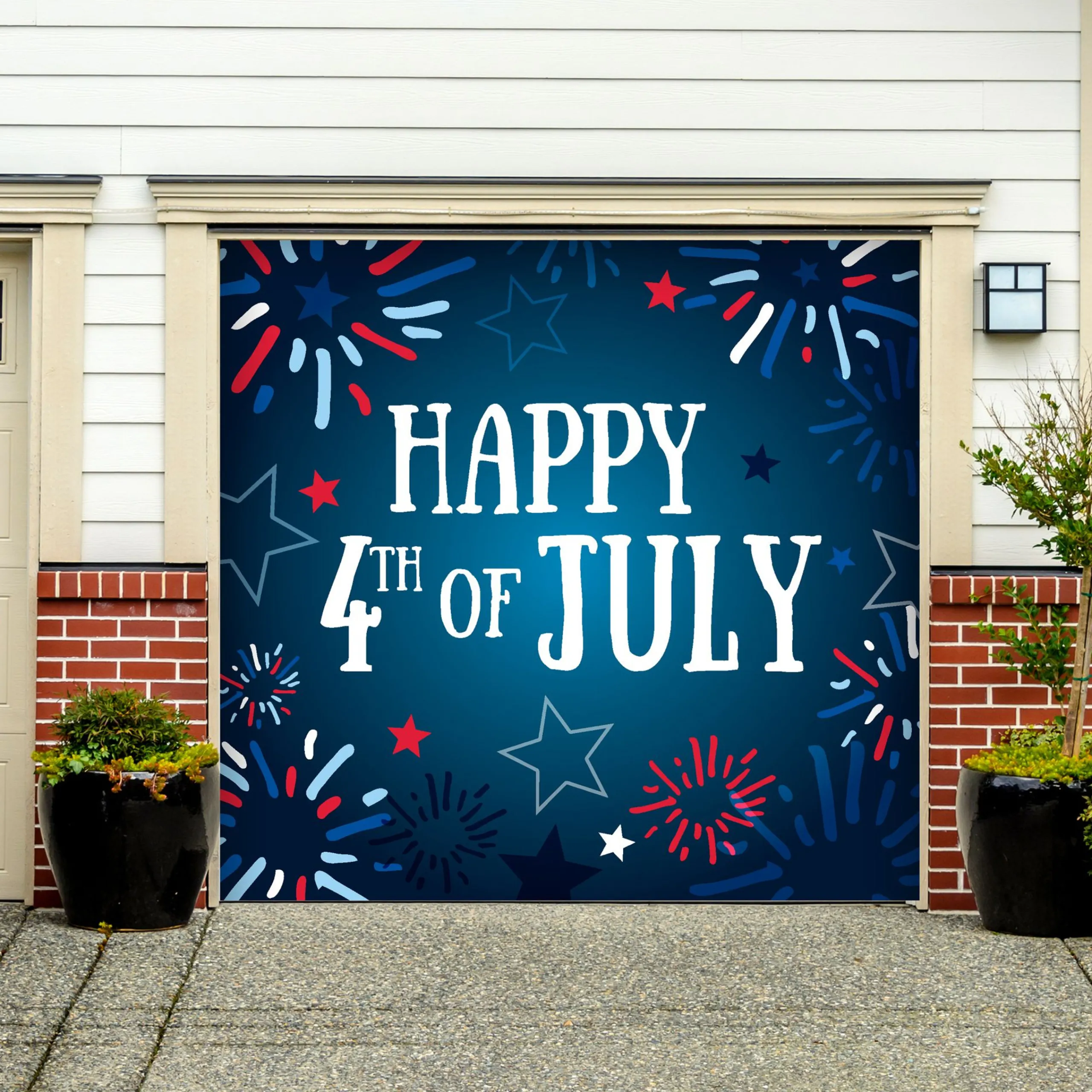 Showdown Displays 7′ X 8′ Blue And White Fireworks Patriotic Single Car Garage Door Banner