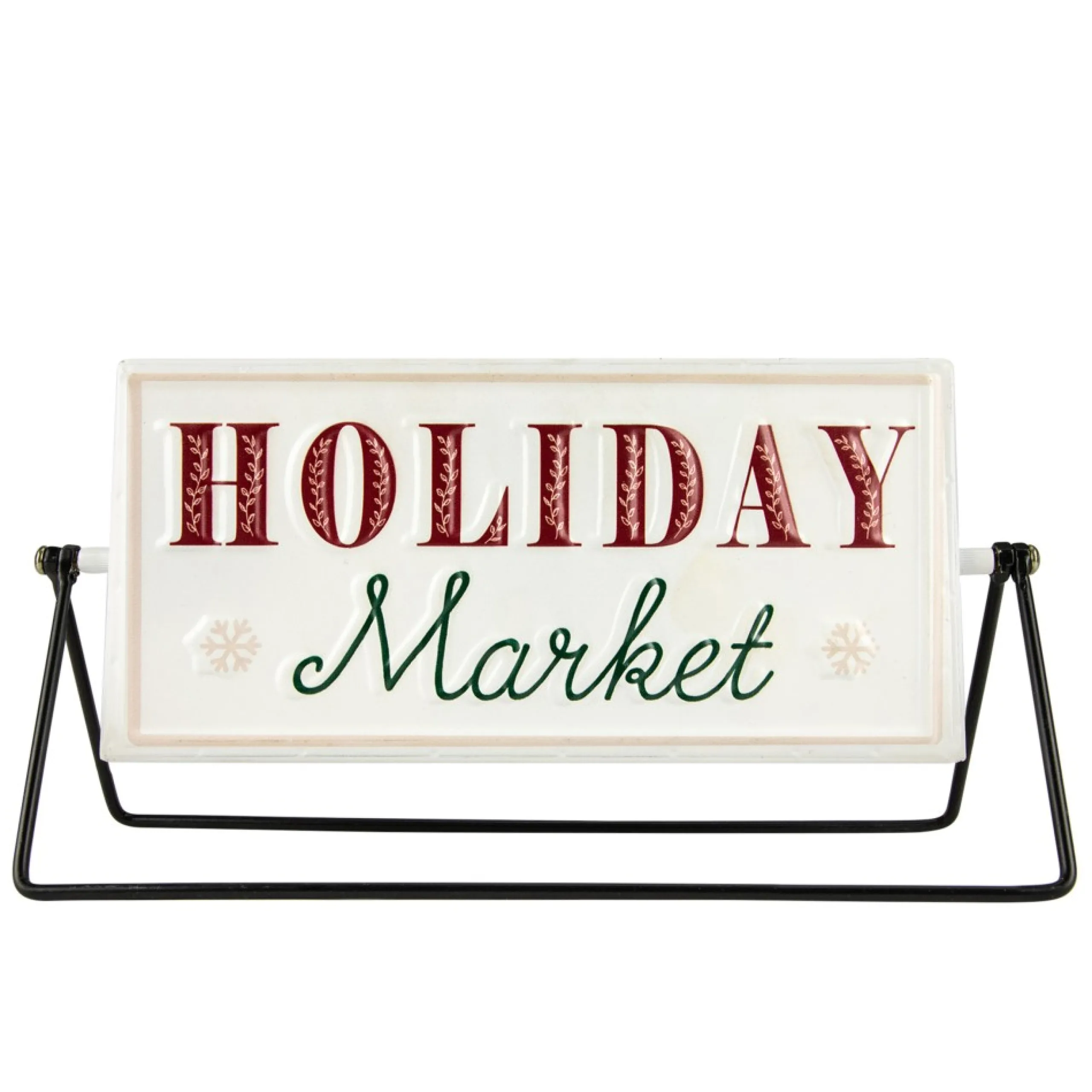 Sign Reads “Merry Christmas” Text On One Side And “Holiday Market” Text On The Other Side