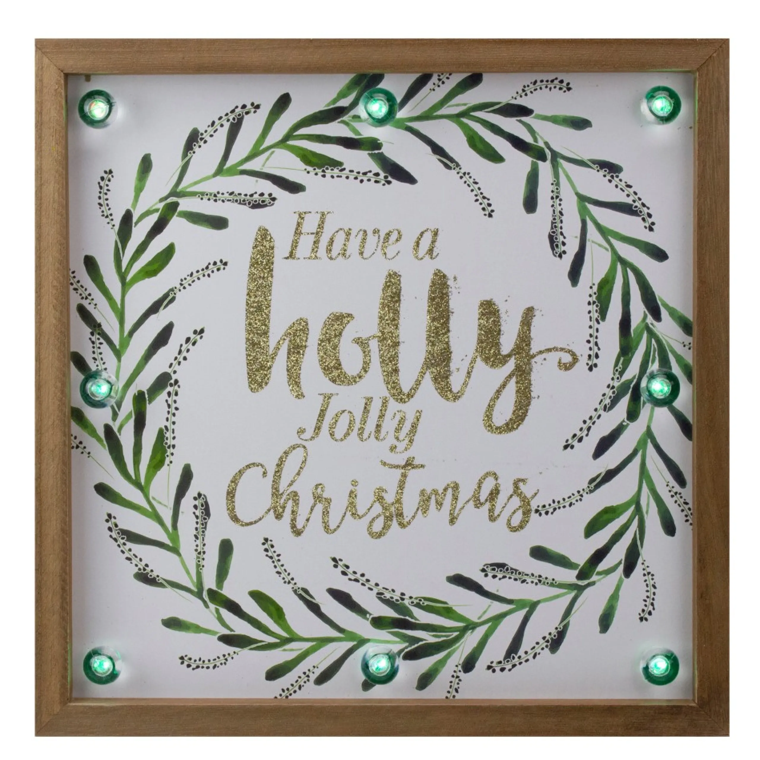 Signs & Plaques*Northlight 11.75″ Lighted “Holly Jolly” With A Green Wreath Wood Christmas Plaque