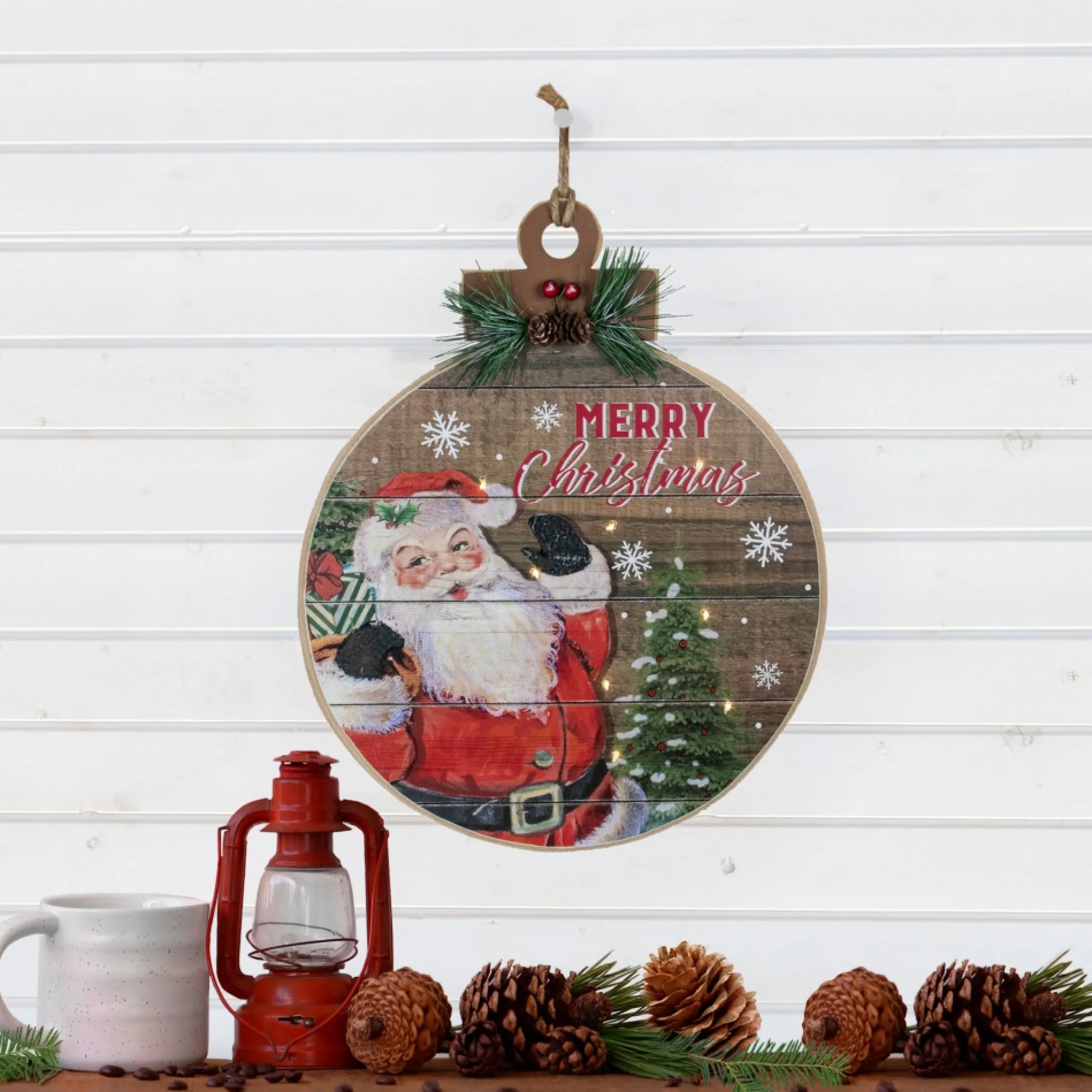 Signs & Plaques*Northlight 15″ B/O Lighted Ball Ornament With Santa Claus Wooden Christmas Wall Sign