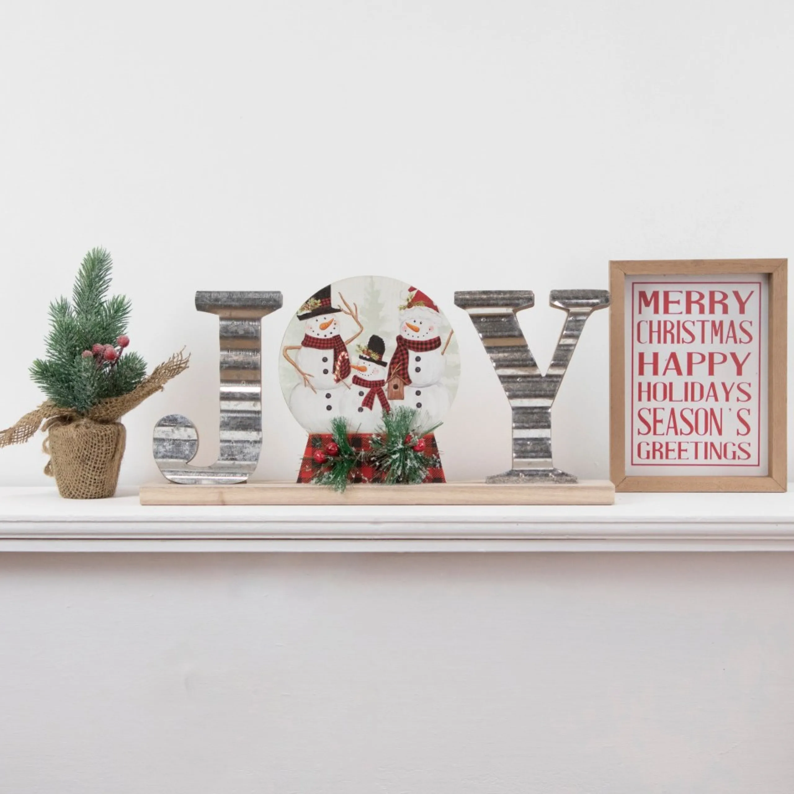 Add A Little Joy To Your Holiday Decor With This Wonderful Tabletop Decoration. Wood And Galvanized Metal Come Together With A Snowman Family, Painted On A Faux Snow Globe, To Form The Perfect Mix Of Rustic And Chic. The Sign Is The Perfect Addition To Your Holiday Decor.