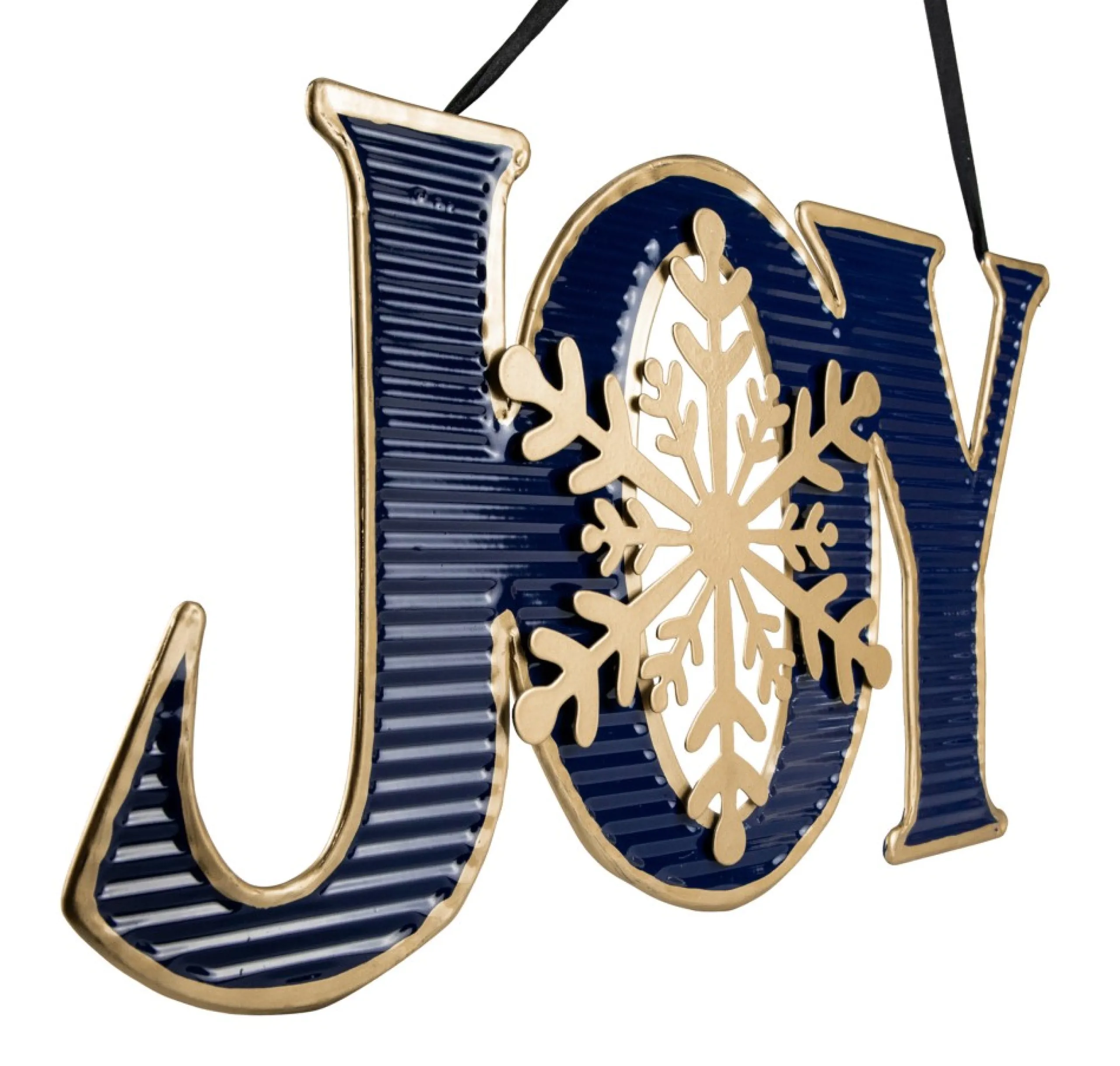 Welcome Friends And Family Into Your Home This Christmas Season, With This Metal “Joy” Wall Sign. Just Perfect For The Entryway, Living Room, Kitchen Or Office. The Blue And Black Design With A Gold Snowflake Accent Will Complement Any Decor Style.