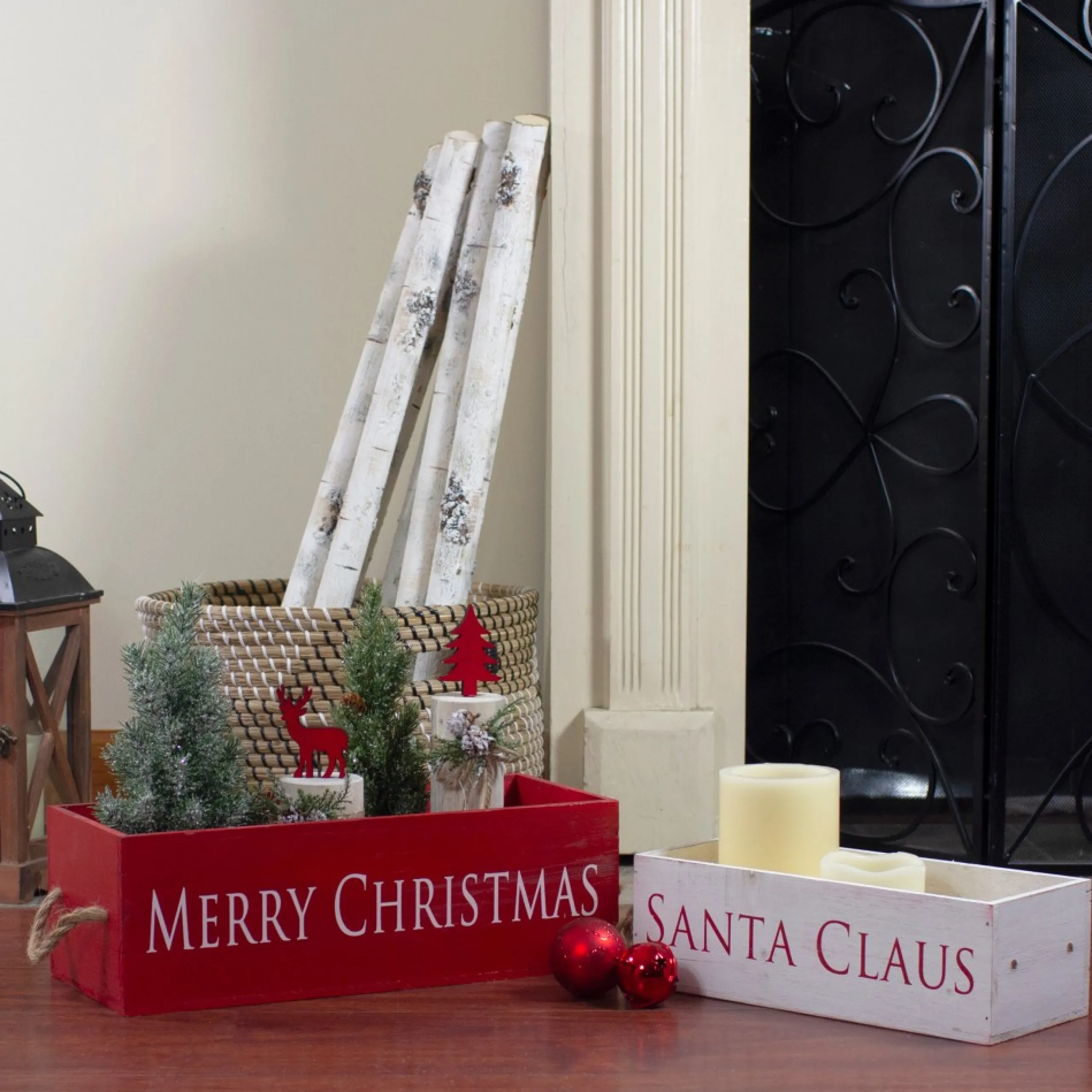 Deck The Halls And Your Home With This Delightful Set Of Decorative Boxes. It Includes A Large Red Wooden Box That Reads ‘Merry Christmas’ Written In White. The Smaller White Wooden Box Reads ‘santa Claus’ Written In Red. Great For Storing Holiday Treasures, Napkins, Artificial Beads And So Much More.