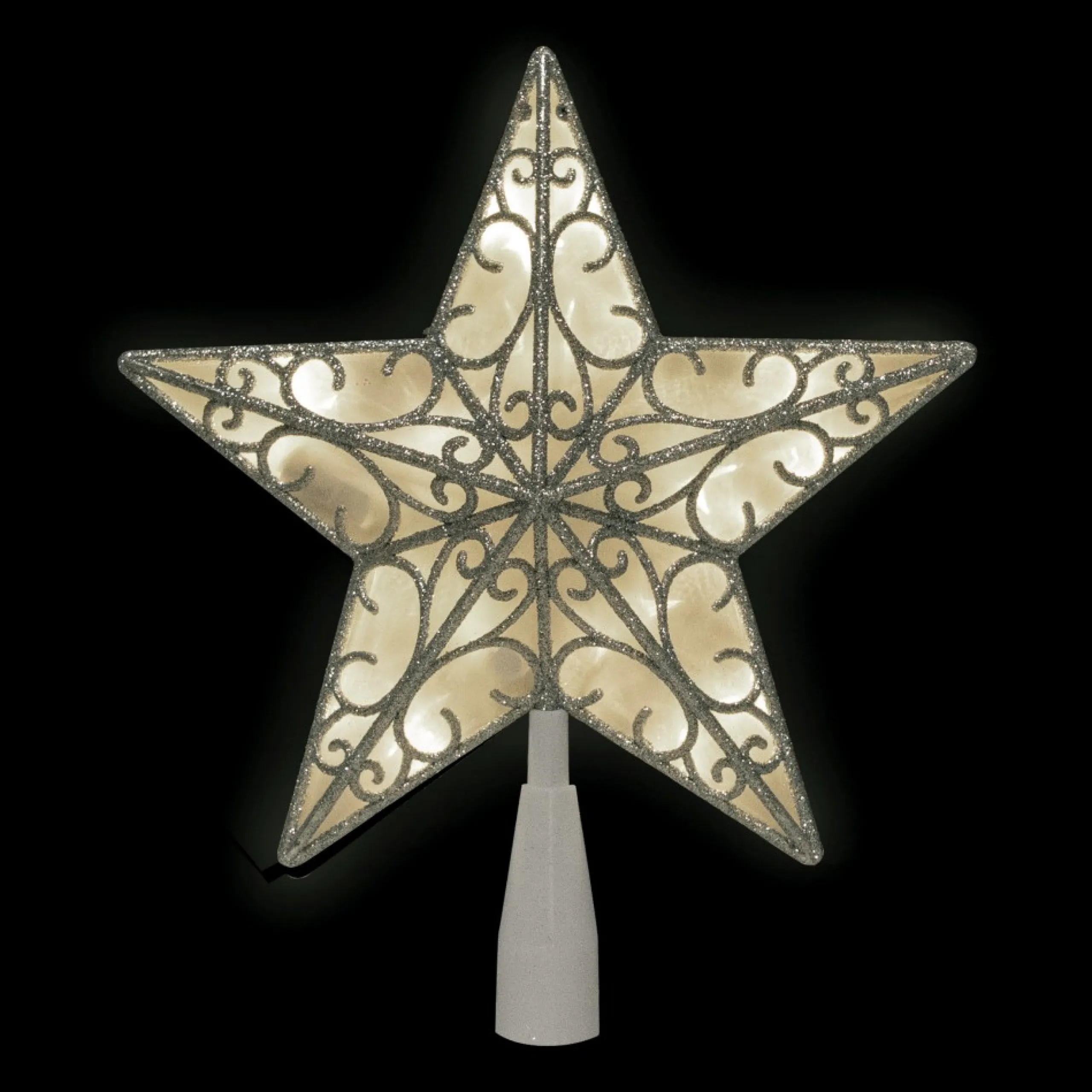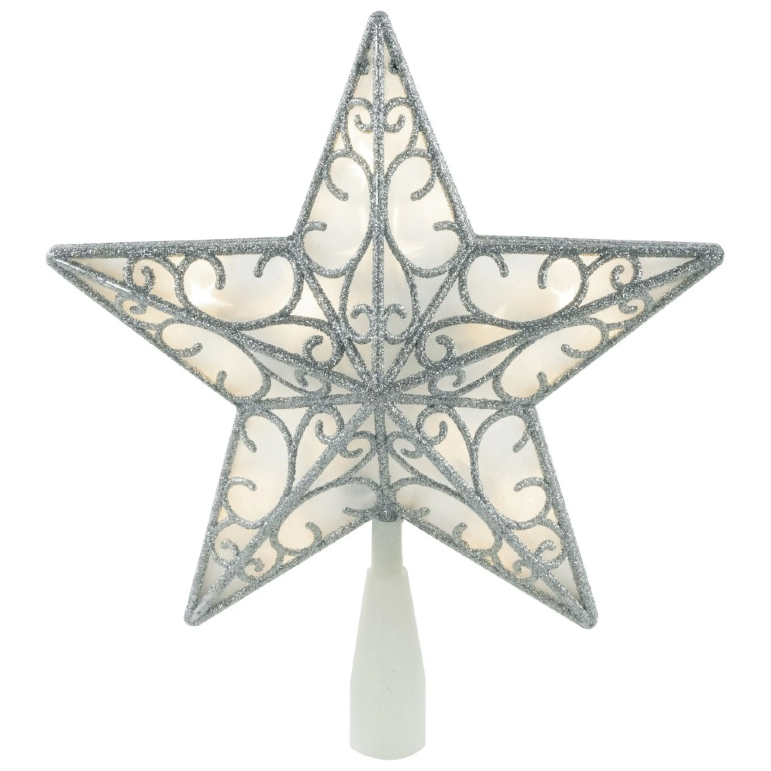 Star Tree Toppers*Northlight 9″ Led Lighted Silver Glitter Star Christmas Tree Topper, Warm White Lights